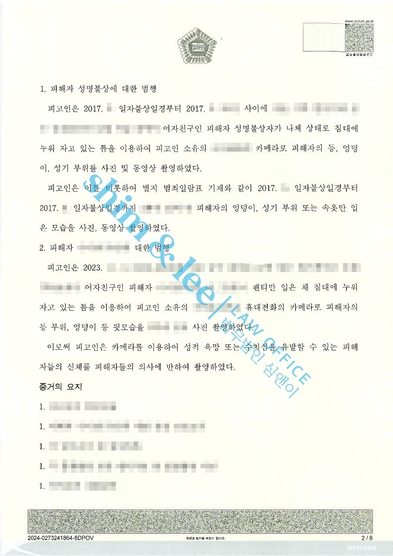 형사고소연인 간 불법 몰카 범죄, 가해자의 주장에 모순이 있음을 양질의 피해자 변호사 의견서로 주장하여 징역 1년 6월 받아낸 사건 2025.03.07징역 1년 6월