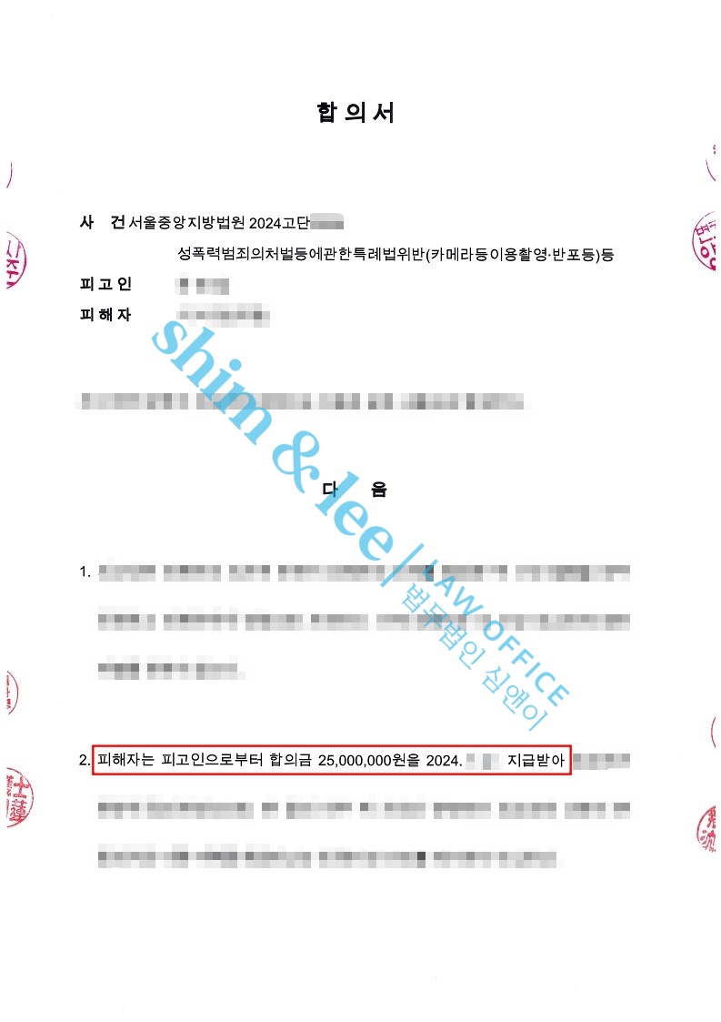 고소 전 합의대행전남자친구가 합성 동영상을 만들어 유포한 사건 2024.05.27합의금 2,000만 원 -