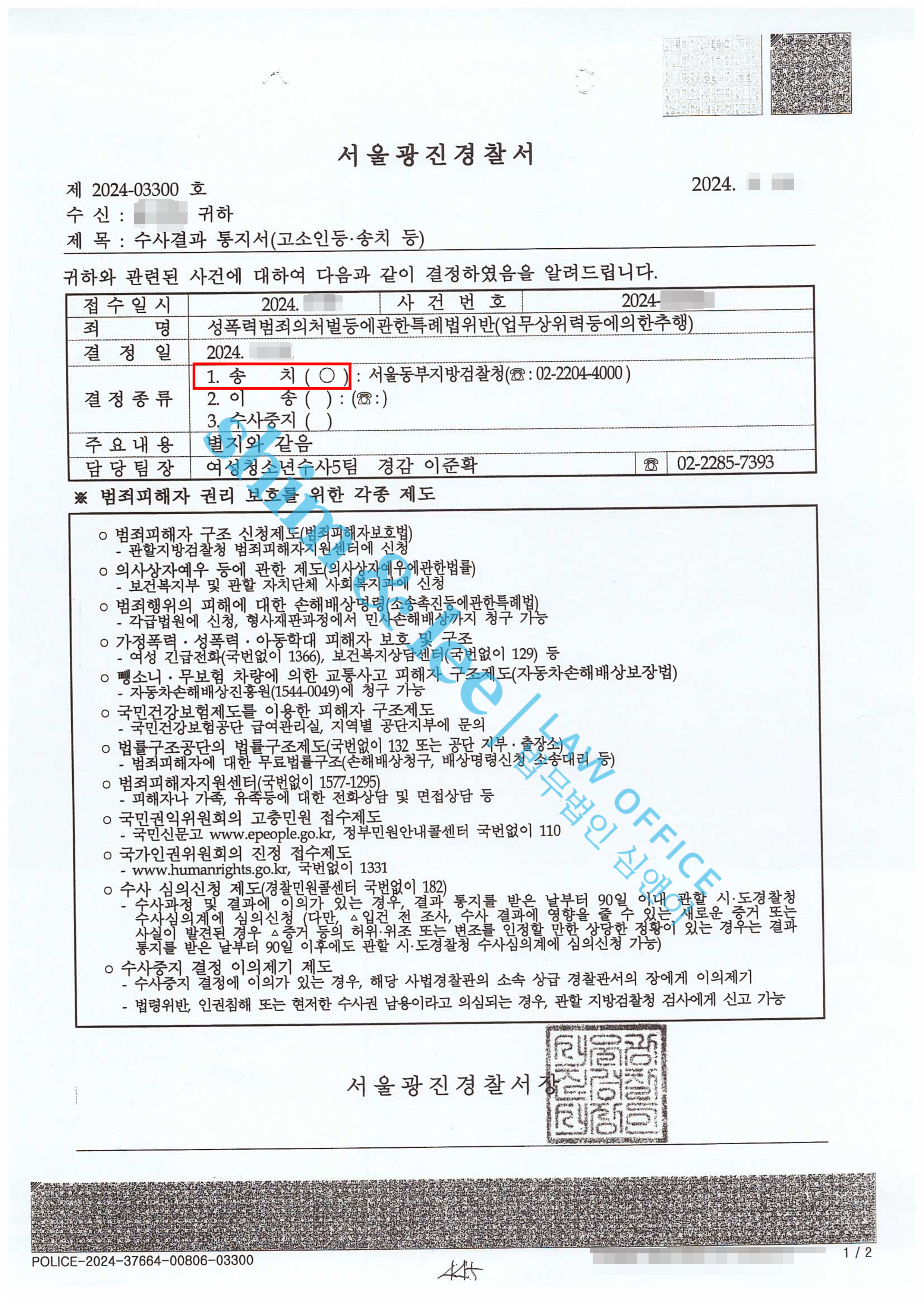 형사고소직장 상사에게 성추행 당한 사건 2025.09.05검찰송치 -