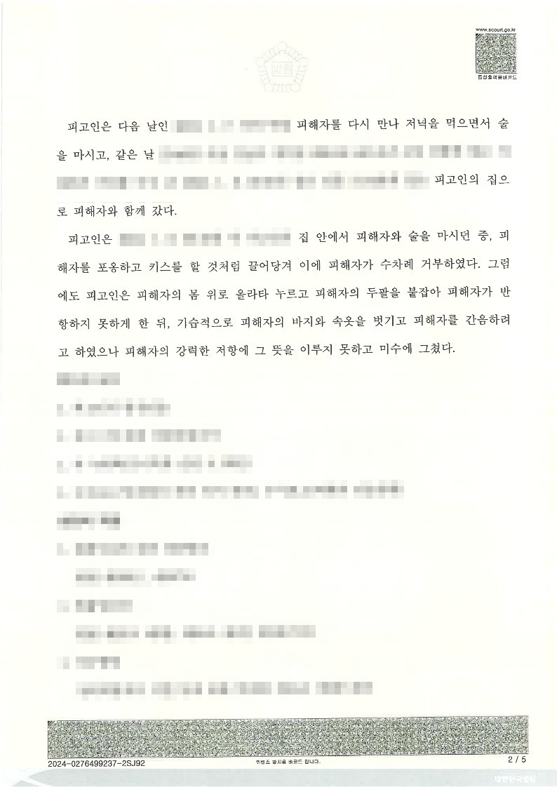 형사고소술자리에서 처음 본 남자에게 강제추행, 폭행 피해 당한 사건 2025.12.12불구속 구공판 -