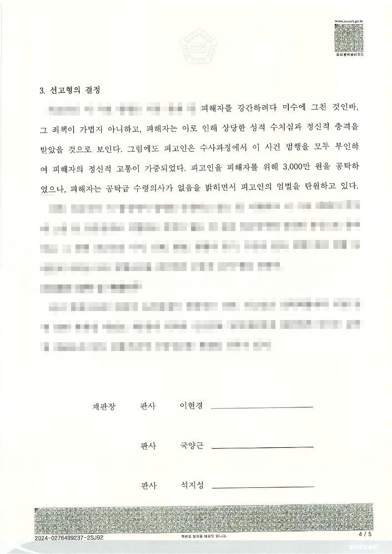 형사고소유년시절 새아빠로부터 성폭행 당한 오래된 친족성폭력 사건 2025.11.07징역 4년