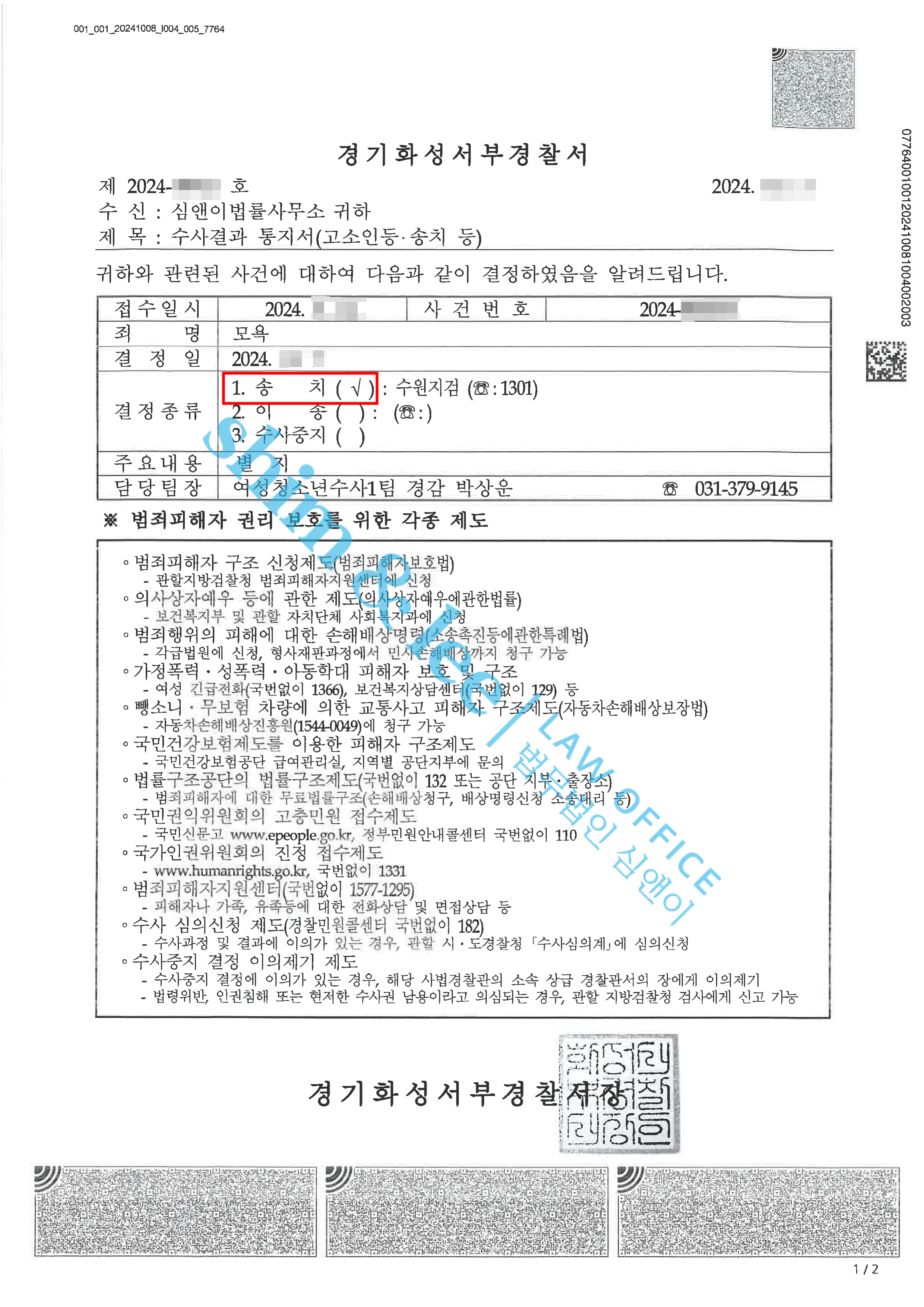 - 결국 2차 조사 후 수사관님께서는 기소 의견으로 송치를 결정해 주셨고, 사건은 검찰 단계로 무사히 넘어가 기소 처분을 받기 위해 최선을 다해 노력하고 있습니다.