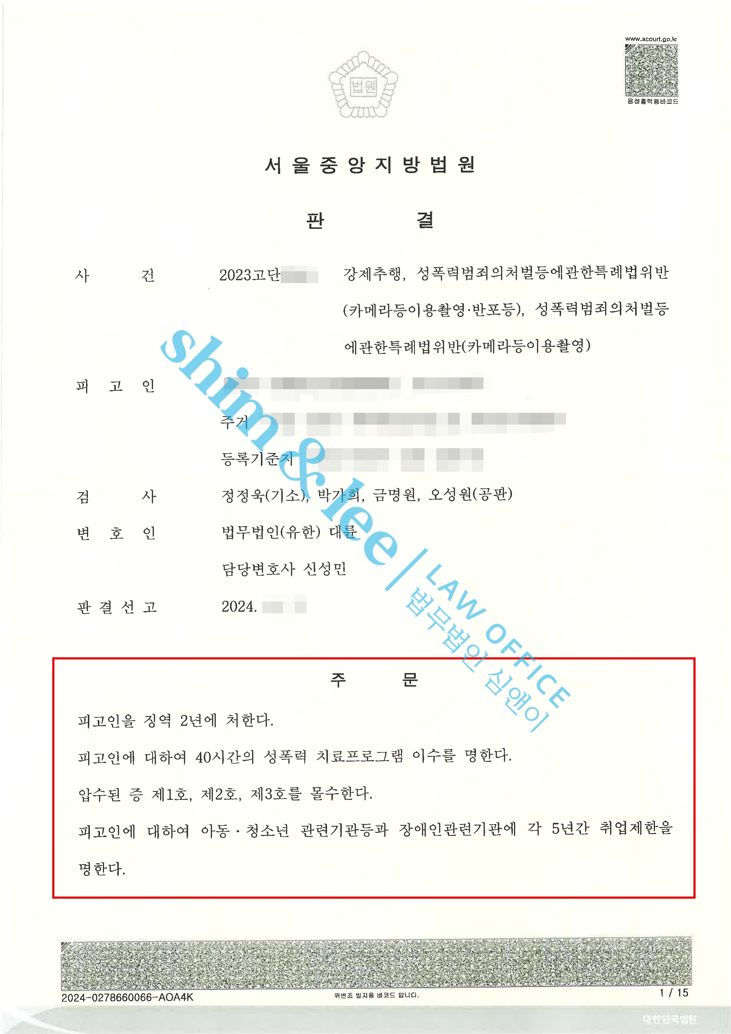 형사고소성관계 중 몰카 피해, 집행유예 3년 선고 받아낸 사건 2025.11.07징역 1년 / 집행유예 3년