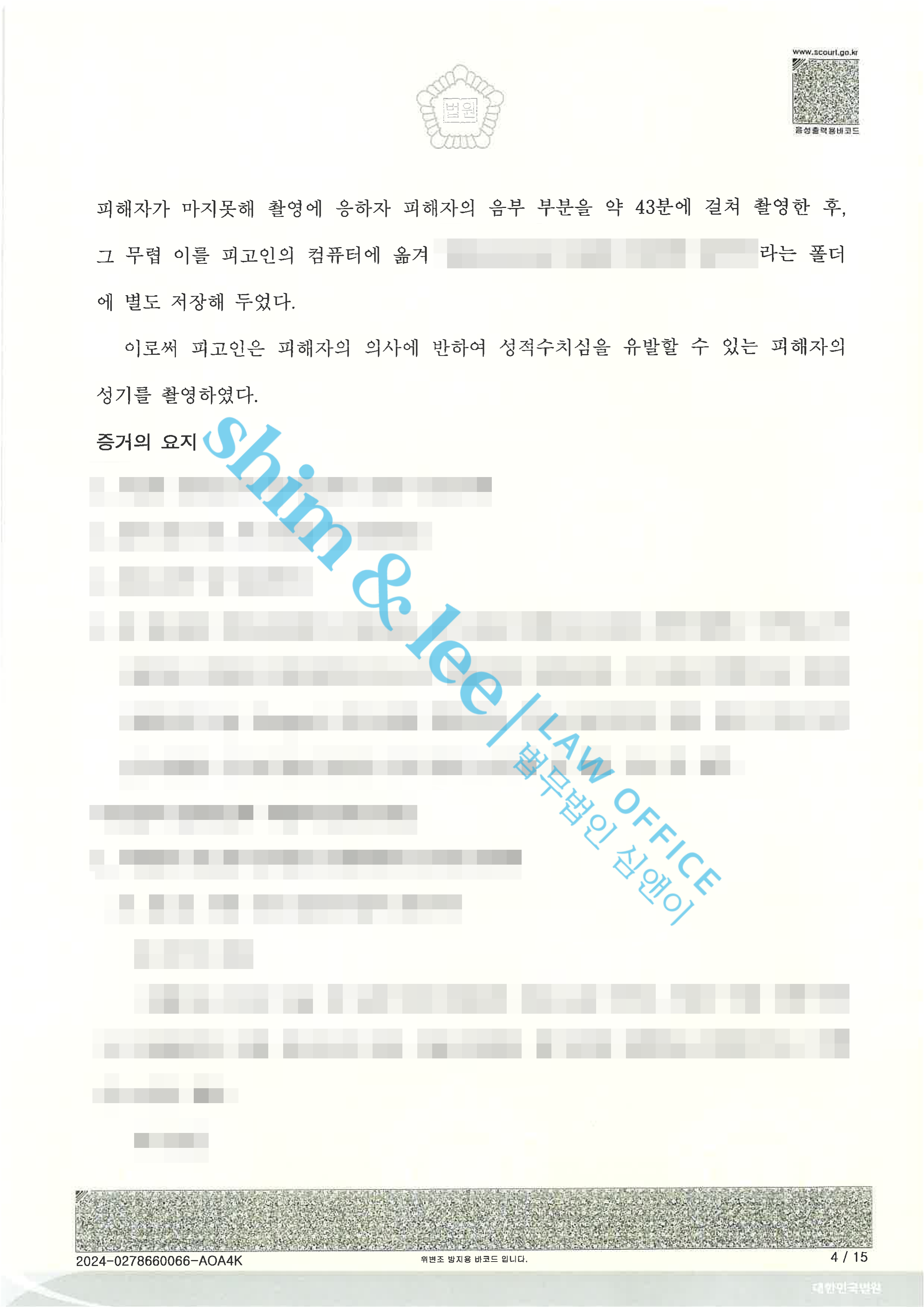 - 오늘의 사례는 의뢰인의 동의가 진정한 의미의 동의가 아니었음을 밝힌 심앤이의 변호사 의견서가 가해자를 법정 구속시킬 수 있는 결정적인 역할을 했습니다. 이처럼 양질의 변호사 의견서는 사건의 판도를 바꿀 수 있는 중요한 역할을 합니다.