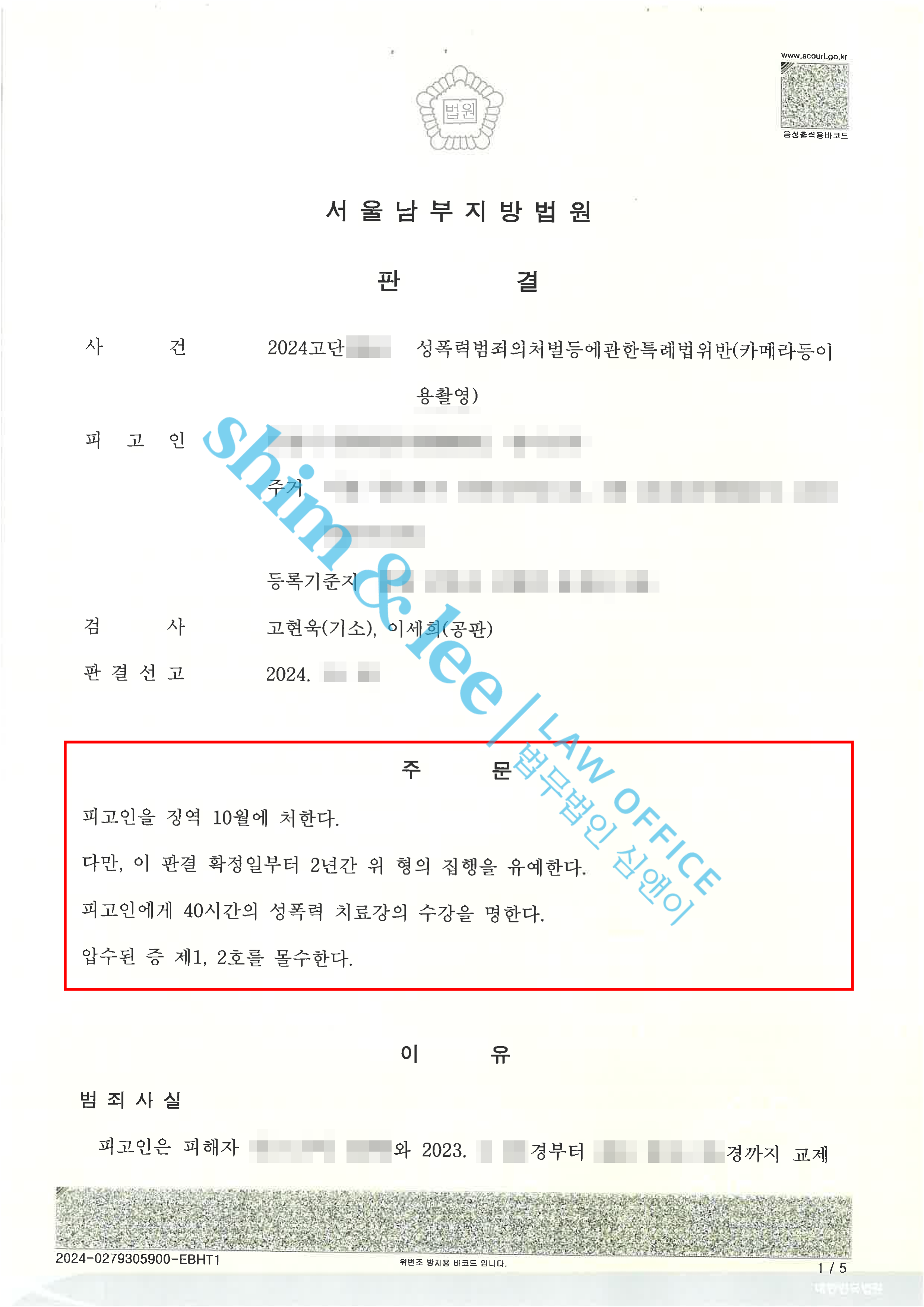 형사고소성관계 중 몰카 피해, 집행유예 3년 선고 받아낸 사건 2025.11.07징역 1년 / 집행유예 3년