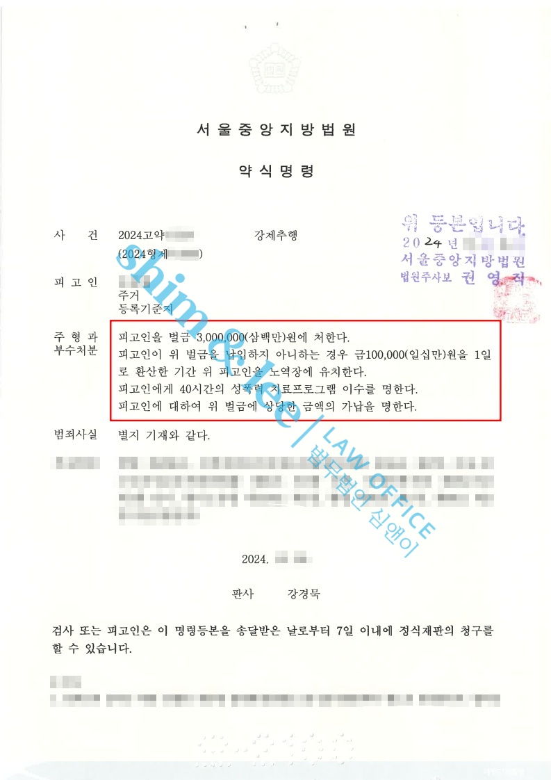 -결국 가해자는 강제추행 혐의가 인정되어 벌금 300만 원과 성폭력 치료강의 40시간이라는 부가 처분까지 받게 되었습니다.