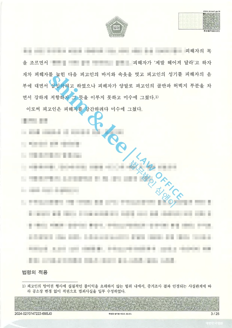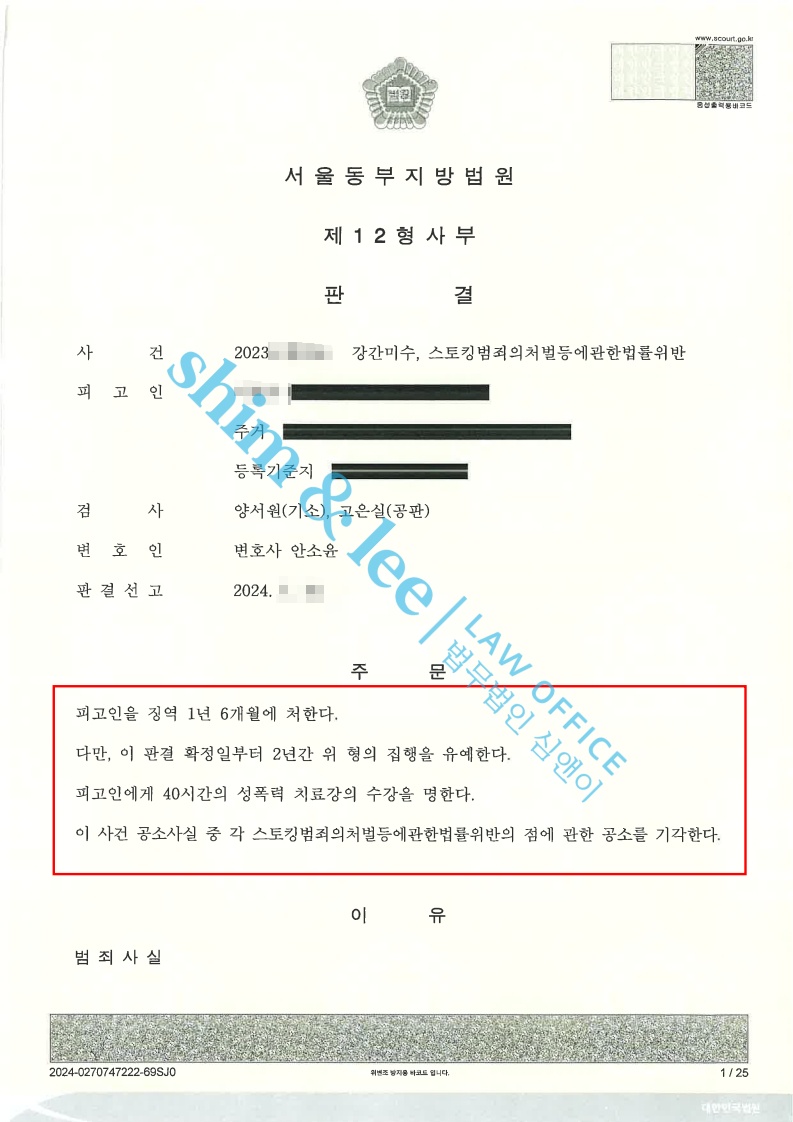 - 재판부는 강간미수건에 대해 피해자의 진술이 일관되고 신빙성이 높다고 판단했고, 가해자는 합의를 했음에도 불구하고 징역 1년 6개월 집행유예 2년 40시간 성폭력치료 수강명령의 중형을 선고받았습니다.