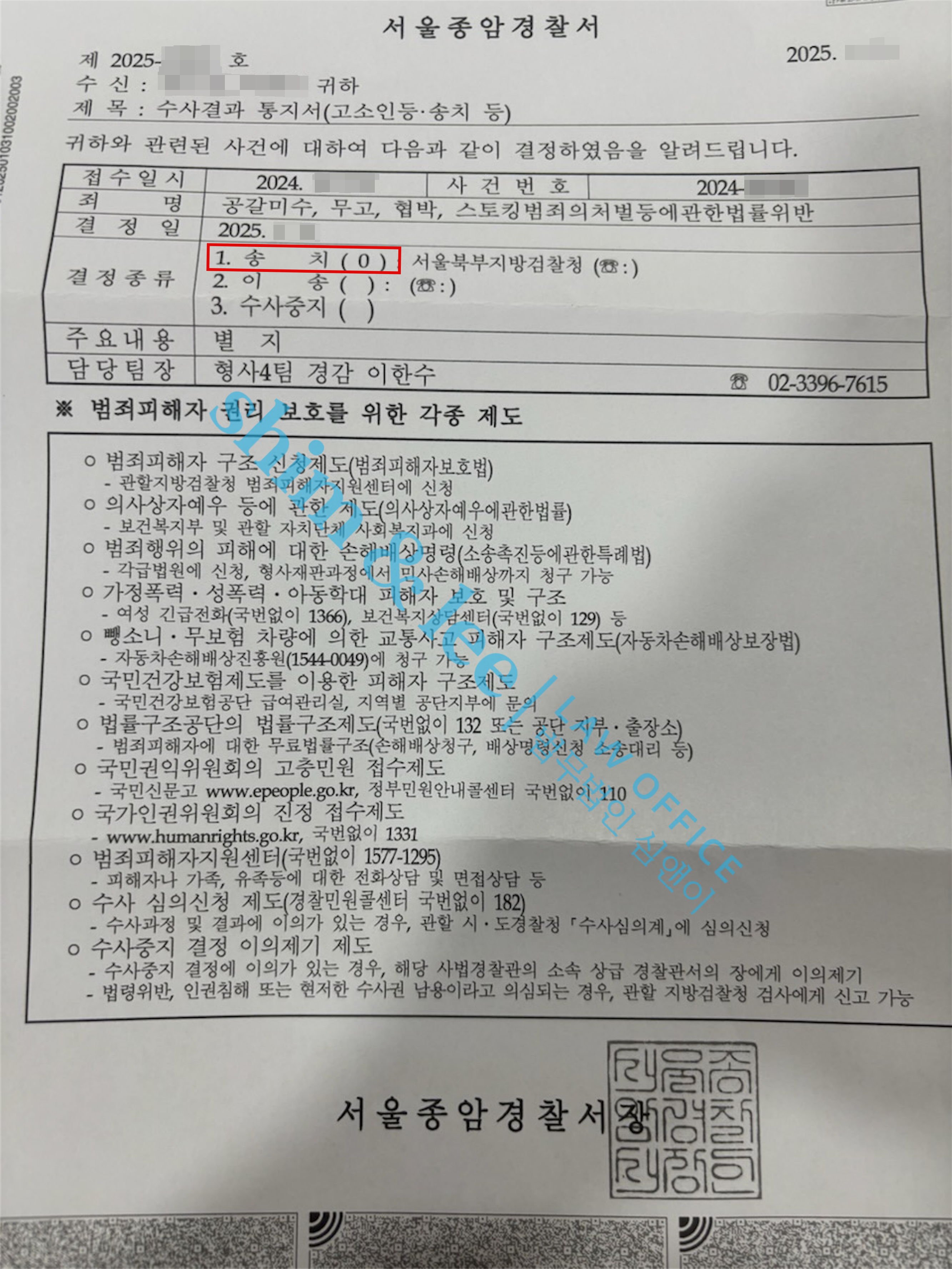 합의금 돌려달라 협박하며 역으로 고소한 가해자를 상대로 특정한 죄명 모두 인정받아 검찰 송치 결정 받은 사건