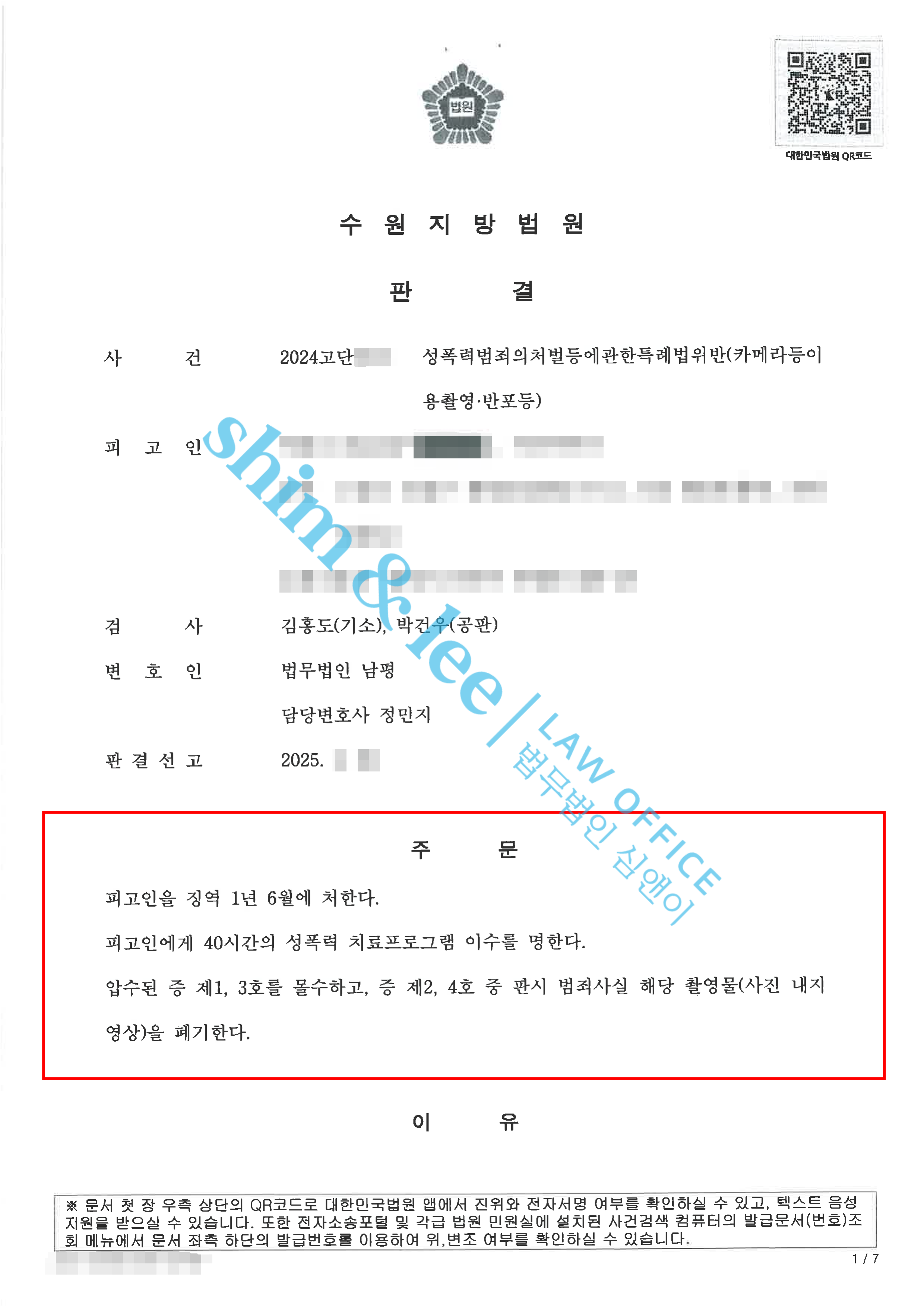 - 의뢰인님은 고소를 통해 가해자의 전자기기가 몰수되고, 불법 촬영 영상또한 폐기 처리된 것을 확인하고 이제야 일상을 되찾은 것 같다는 말씀을 해주셨습니다.