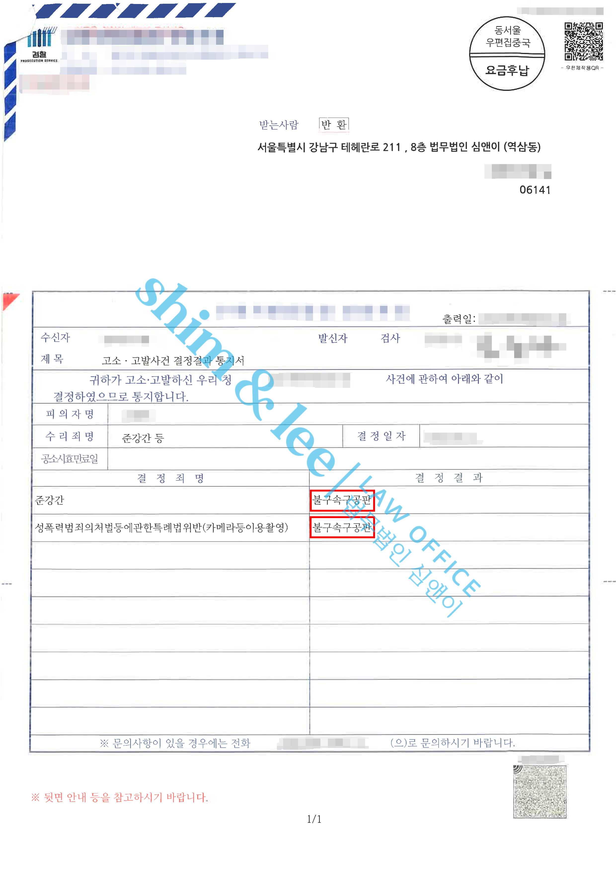 형사고소마사지사를 유사강간한 사례 2022.05.17정식기소처분 -