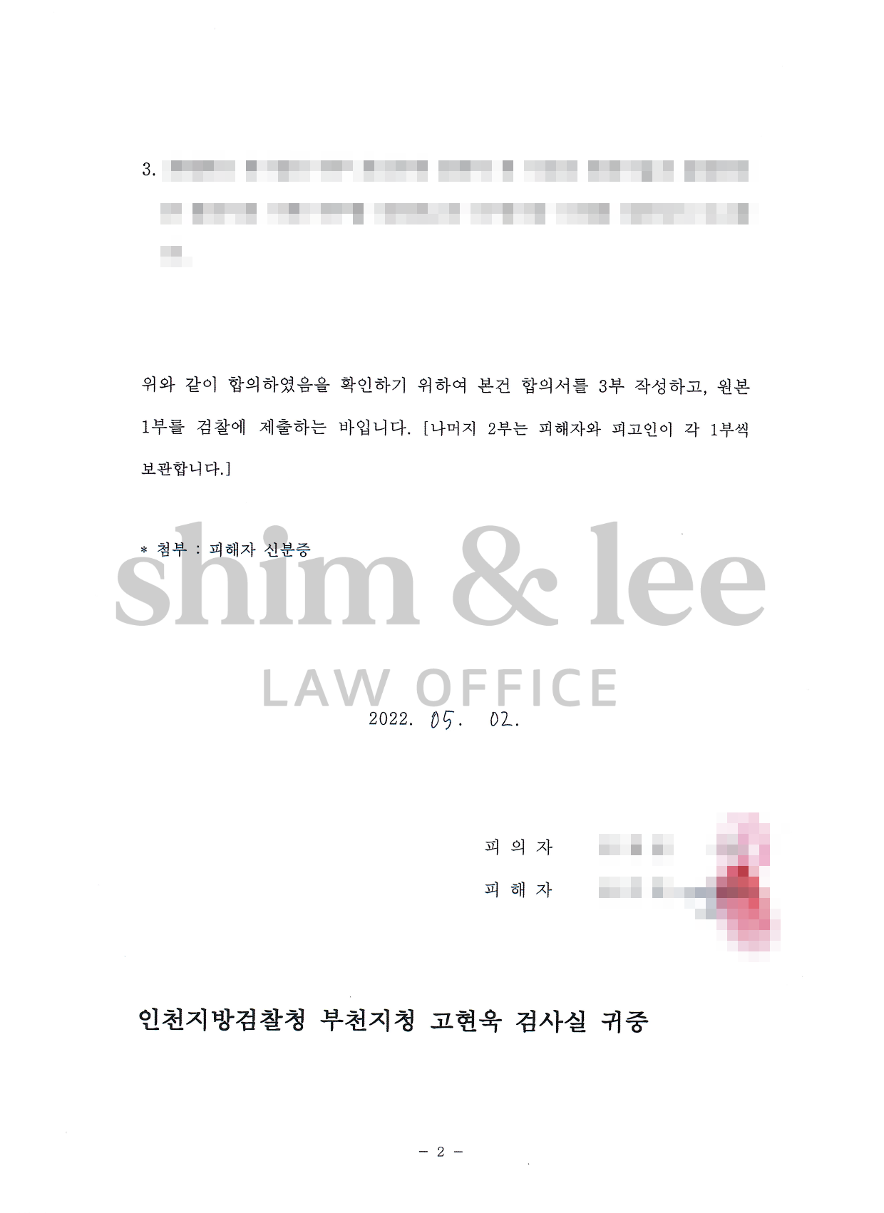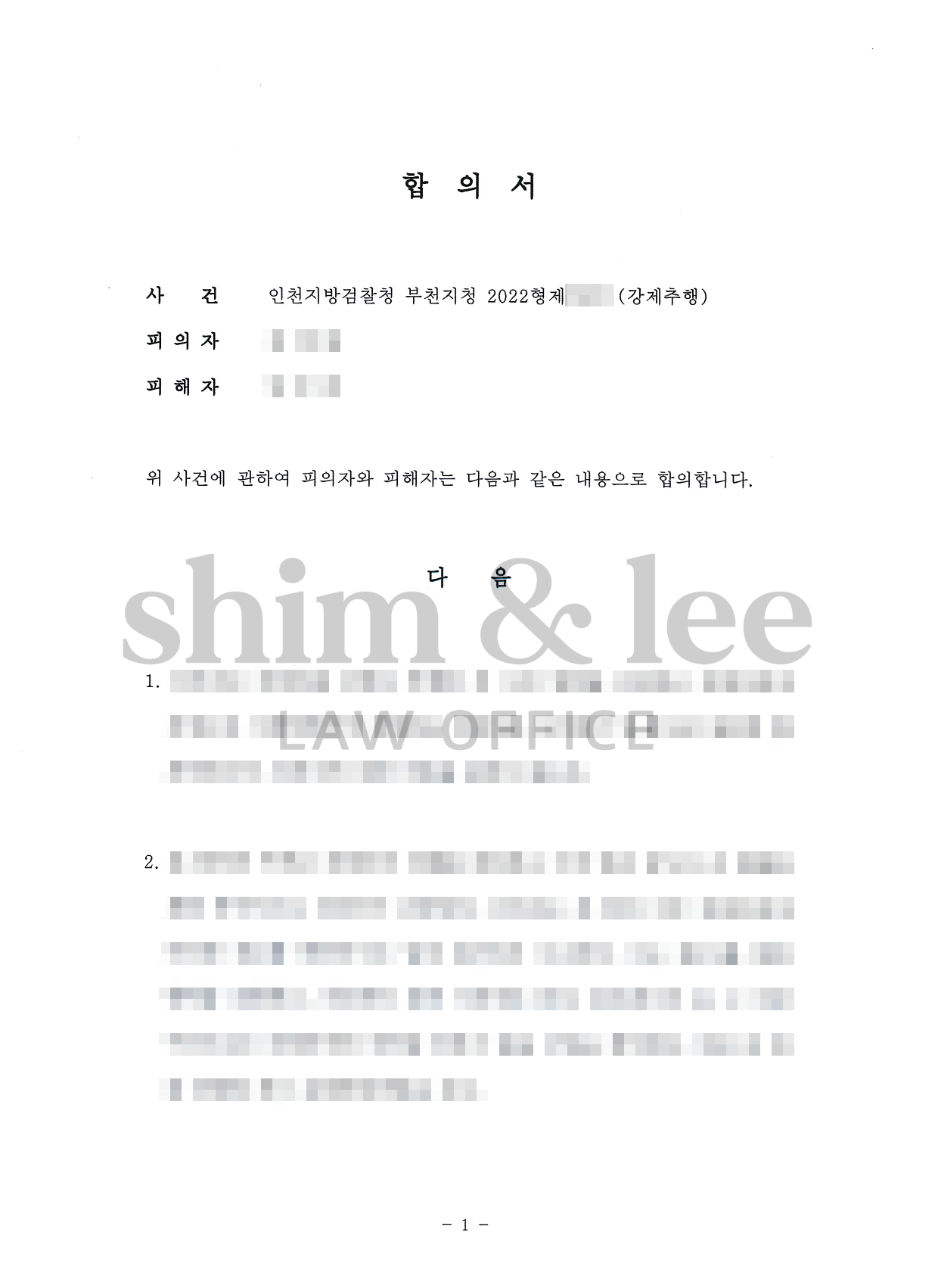 민사소송으로 가더라도 1,000만 원 정도는 인용받을 수 있다는 점을 이야기하여 1,500만 원을 하한선으로 어필했고, 가해자는 금액 부담 때문에 마지막까지 망설였으나 결국 제안을 받아들이게 되었습니다.
