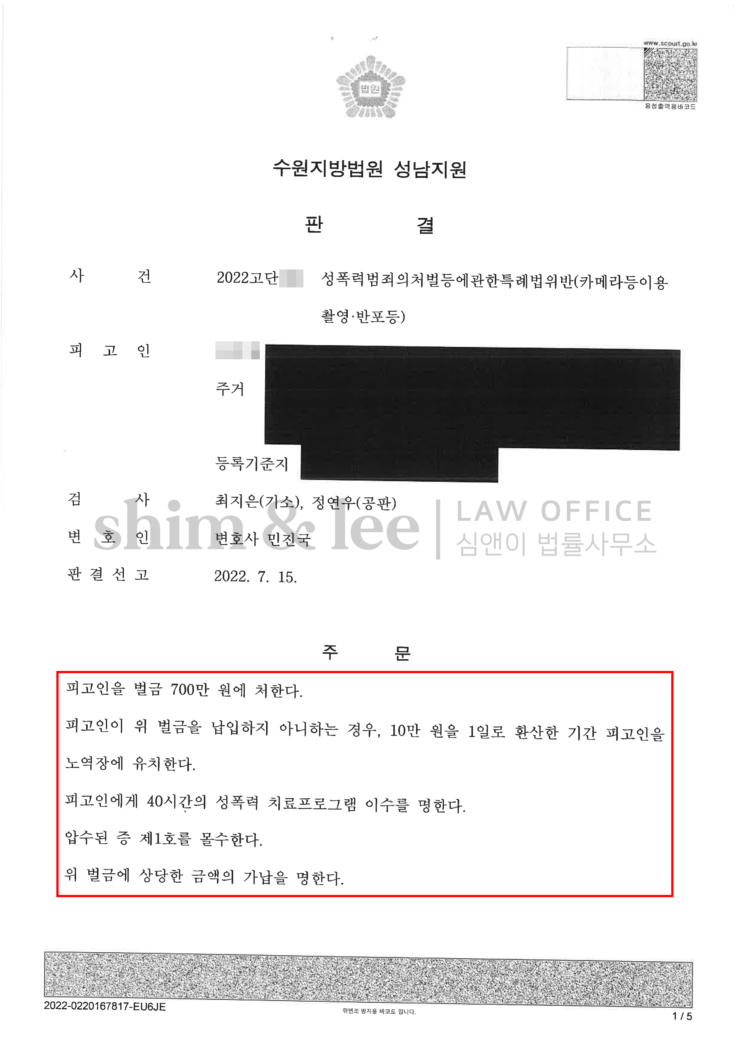 변호사 비용까지 생각하면 가해자는 이 사건에 거의 3천만 원 정도를 써야 했으며, 디지털성범죄 전과까지 생기는 아주 큰 불이익을 받았습니다. 덕분에 의뢰인도 많은 위로를 받고 사건을 마무리할 수 있었습니다.