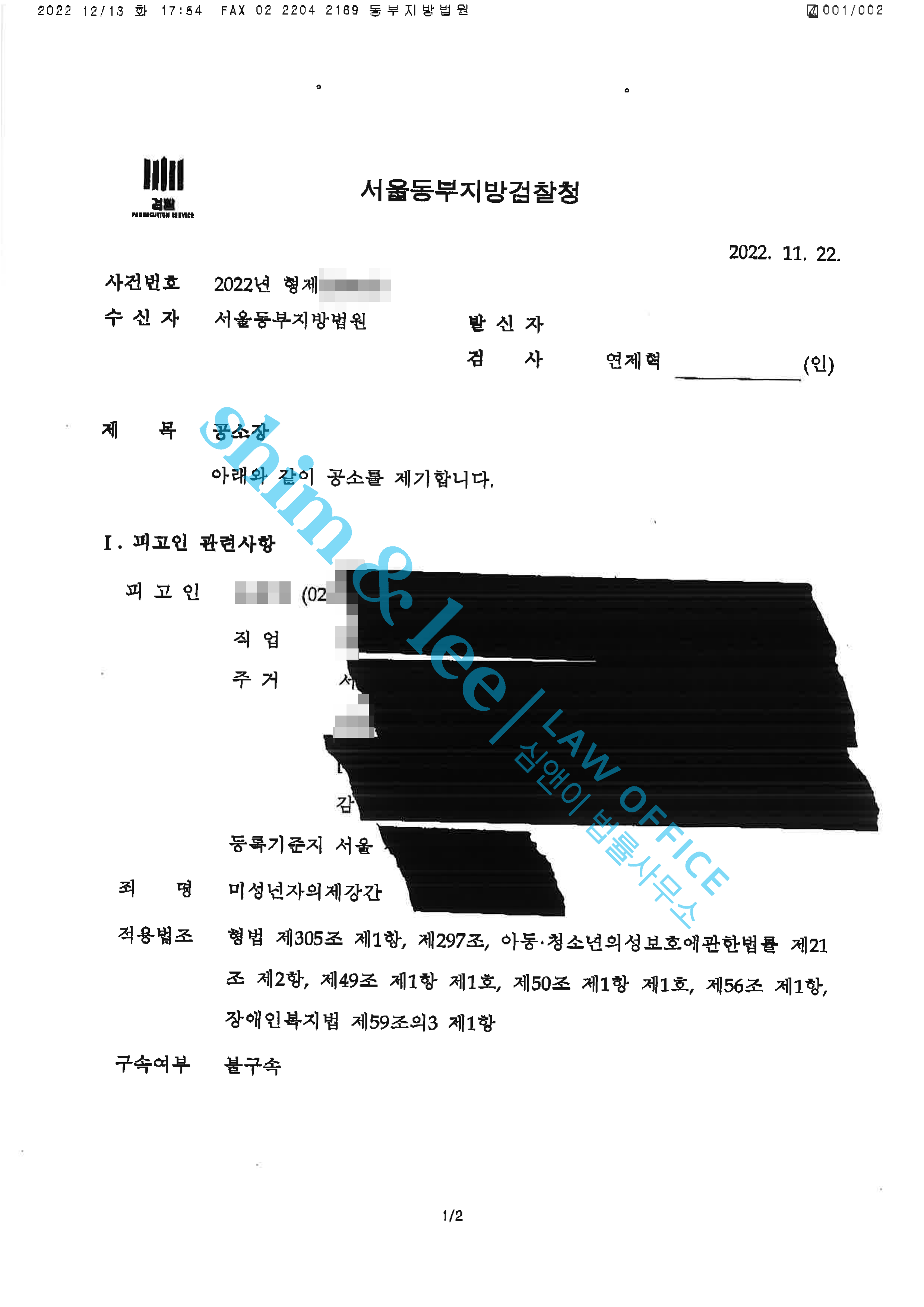 검찰에서도 가해자의 혐의가 충분하다고 보고 추가적인 수사 없이 빠르게 기소하였습니다.
