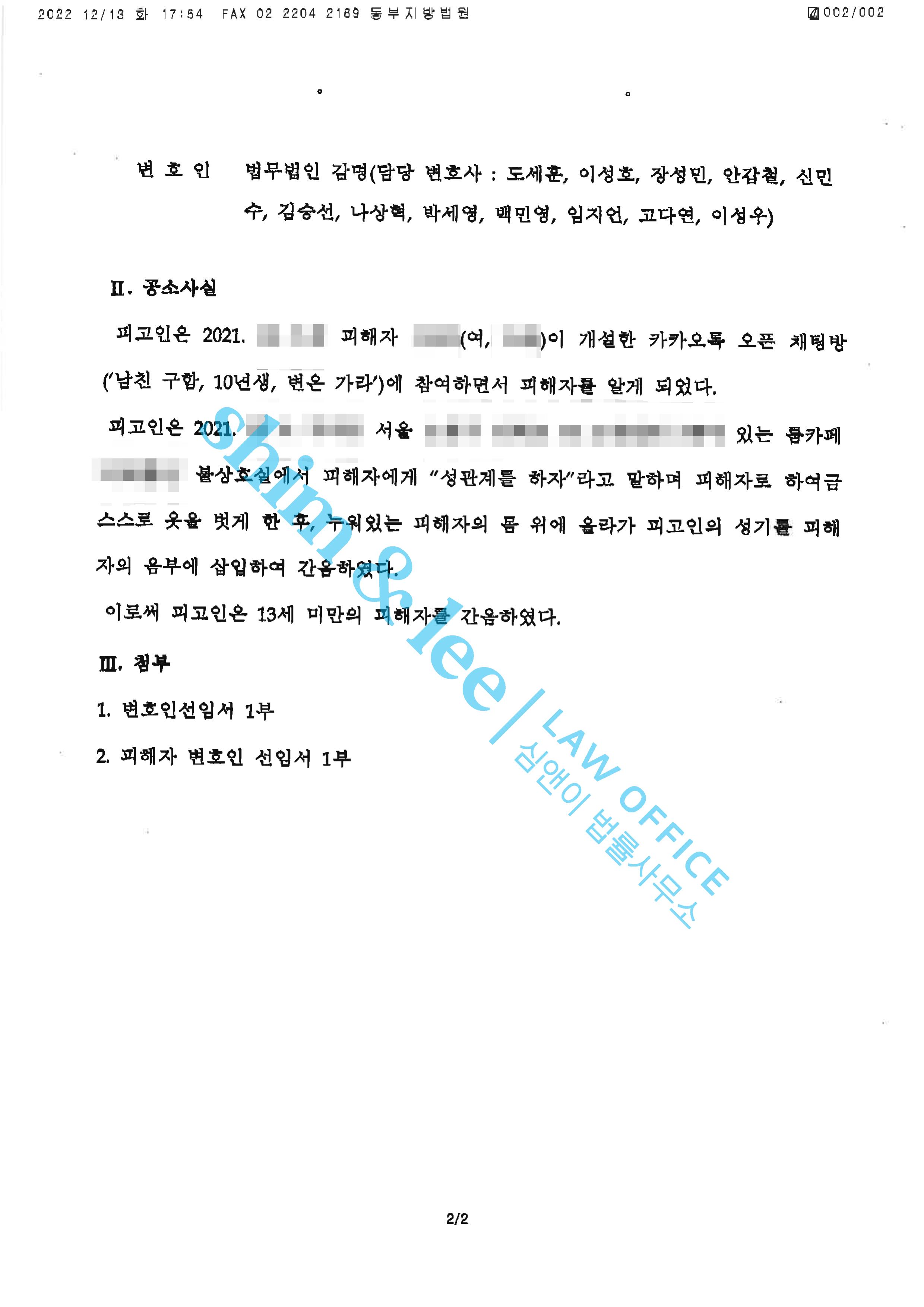 이 사건의 법리적 쟁점을 자세하게 해석하고, 피해자 진술의 신빙성을 강조하는 의견서를 짜임새 있게 제출한 덕분에 경찰 수사가 탄력을 받아 빠르게 진행되었습니다. 수사관은 심앤이의 의견서를 받아본 후 무리 없이 사건을 송치했습니다.