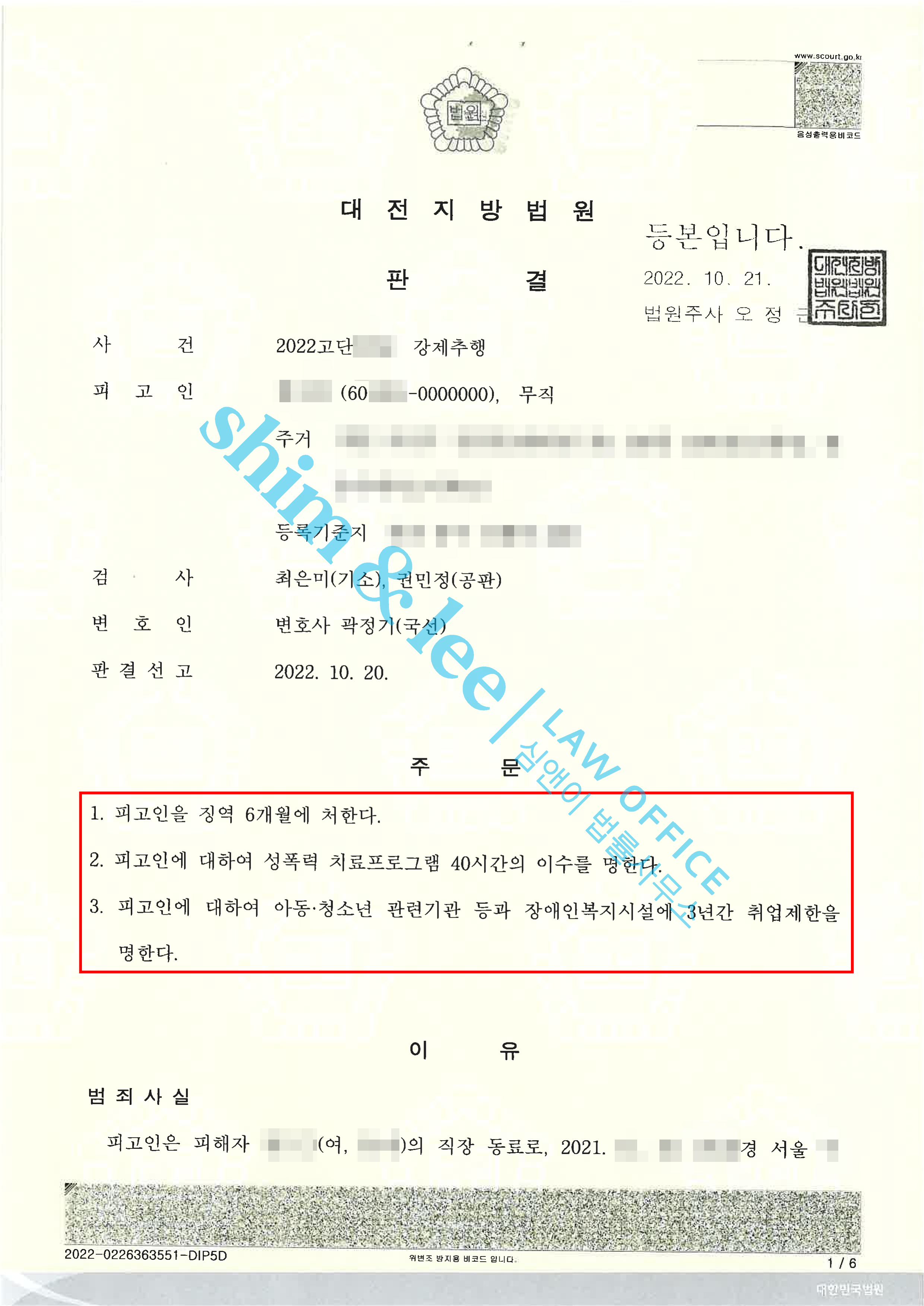 결국 가해자는 징역 6월의 실형을 선고받고 법정구속되었습니다. 피해자는 원했던 결과를 만들어주셔서 감사하다며 연신 눈물을 흘리셨습니다.