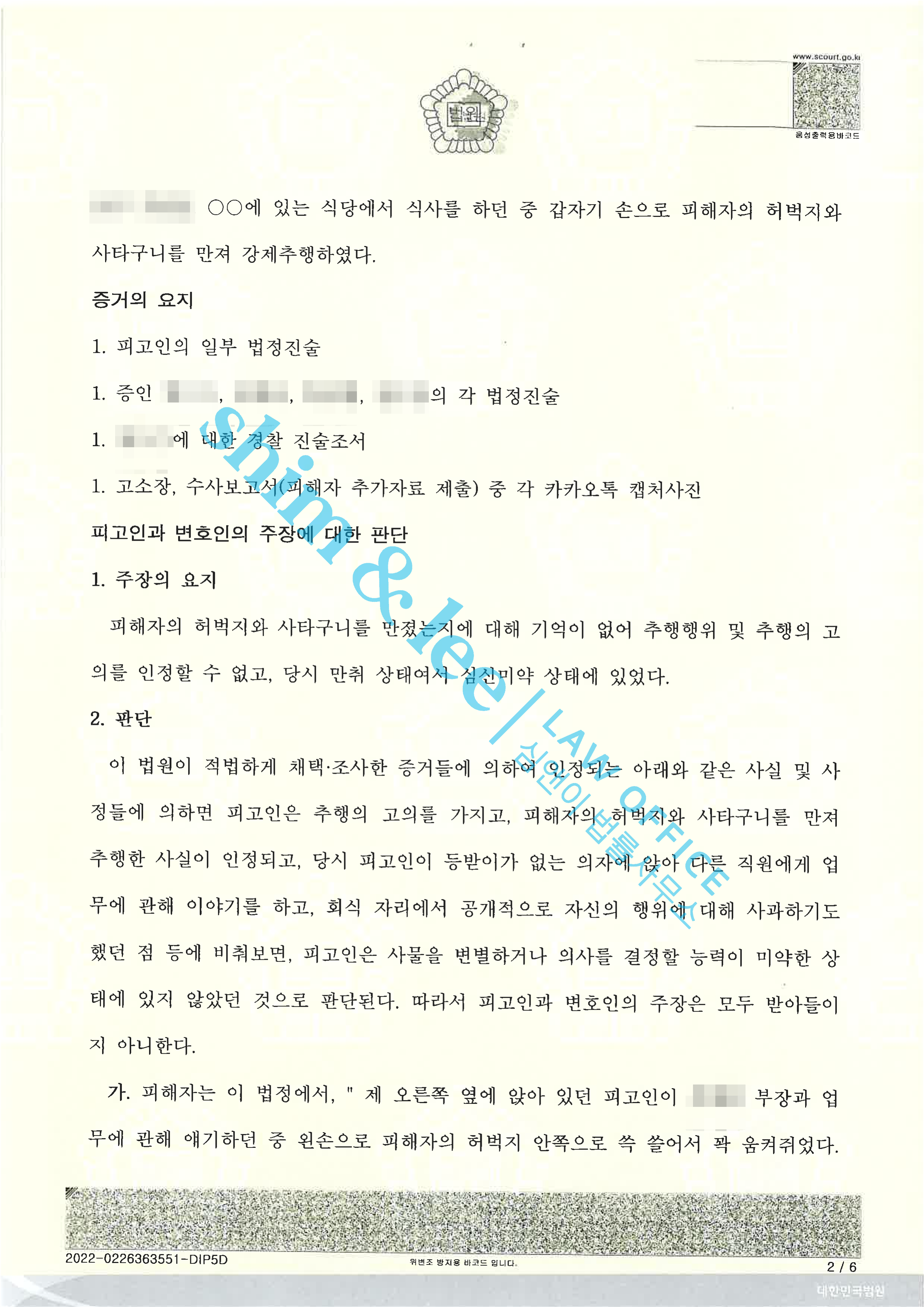 형사고소술자리에서 처음 본 남자에게 강제추행, 폭행 피해 당한 사건 2025.12.12불구속 구공판 -