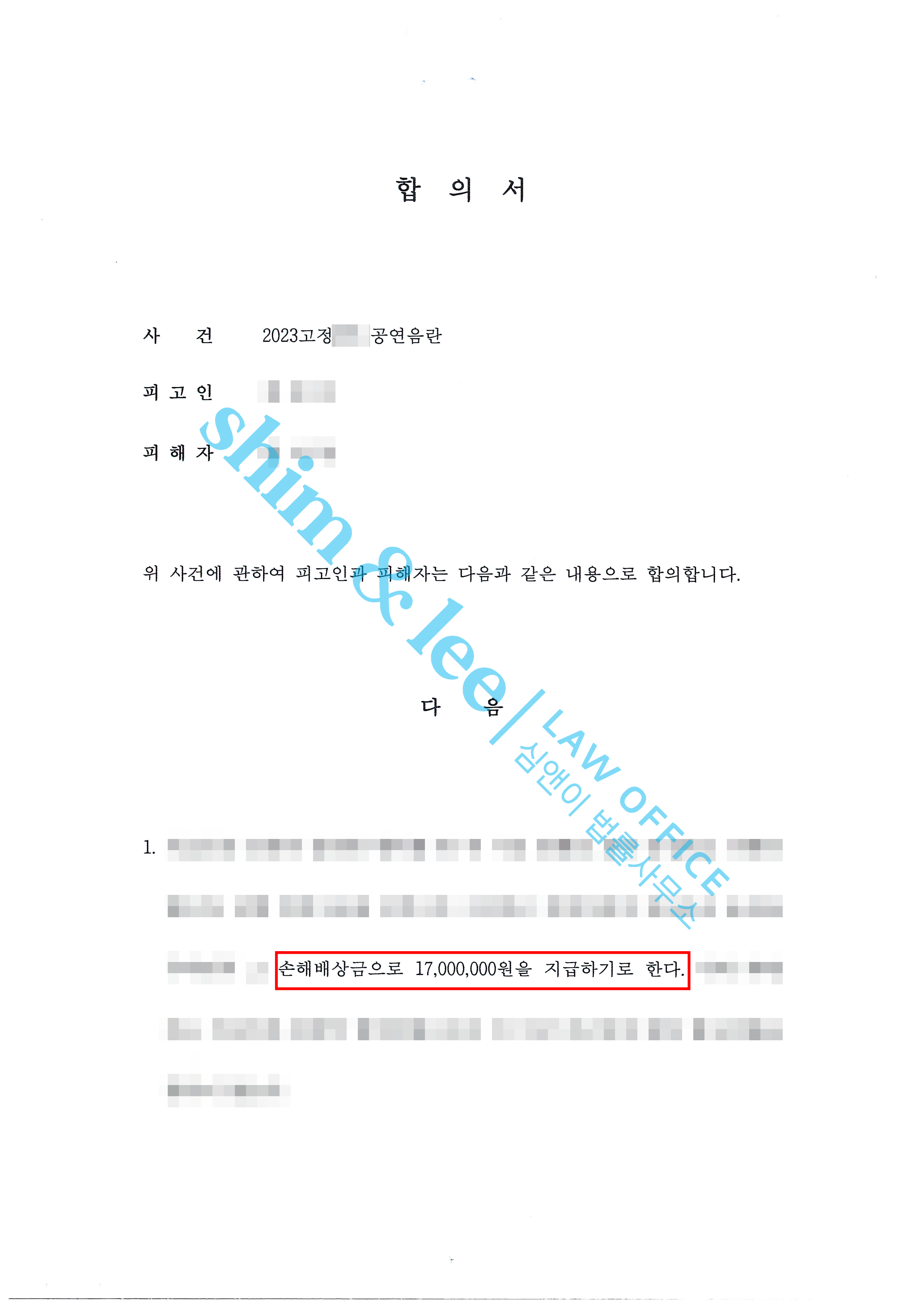 재판까지 가게 되자 겁을 먹은 가해자는 이전보다 훨씬 높은 금액으로 합의를 요청해왔고, 결국 1,700만 원의 큰 금액으로 합의에 성공할 수 있었습니다.