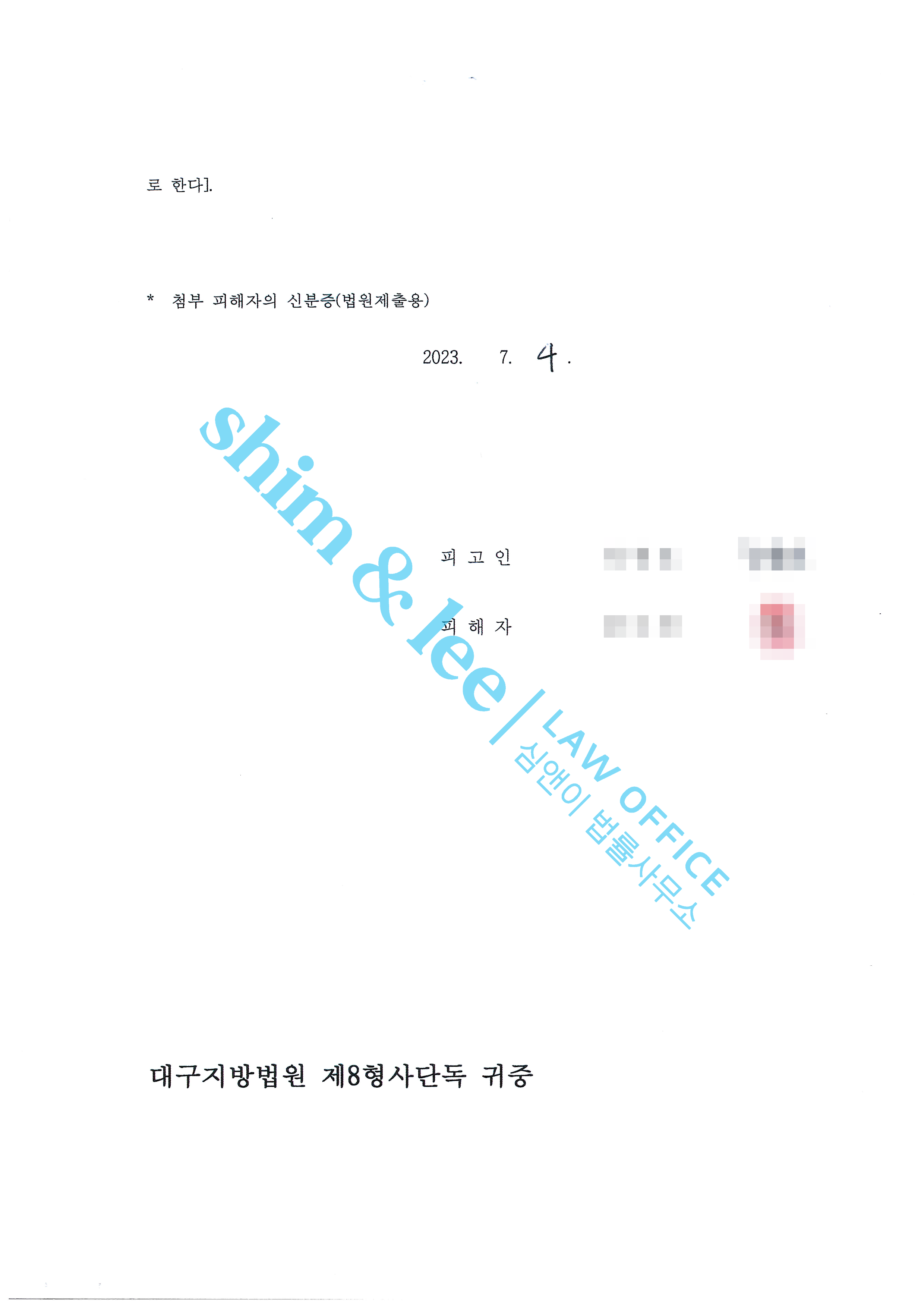 2. 심앤이는 피해자 변호사 의견서로 위 내용을 하나하나 자세히 설명하면서 약식명령이 아닌 정식재판으로 회부해달라고 요청했고, 결국 약식 재판부는 심앤이의 요청을 받아들여 가해자를 재판정에 서게 해주셨습니다.
