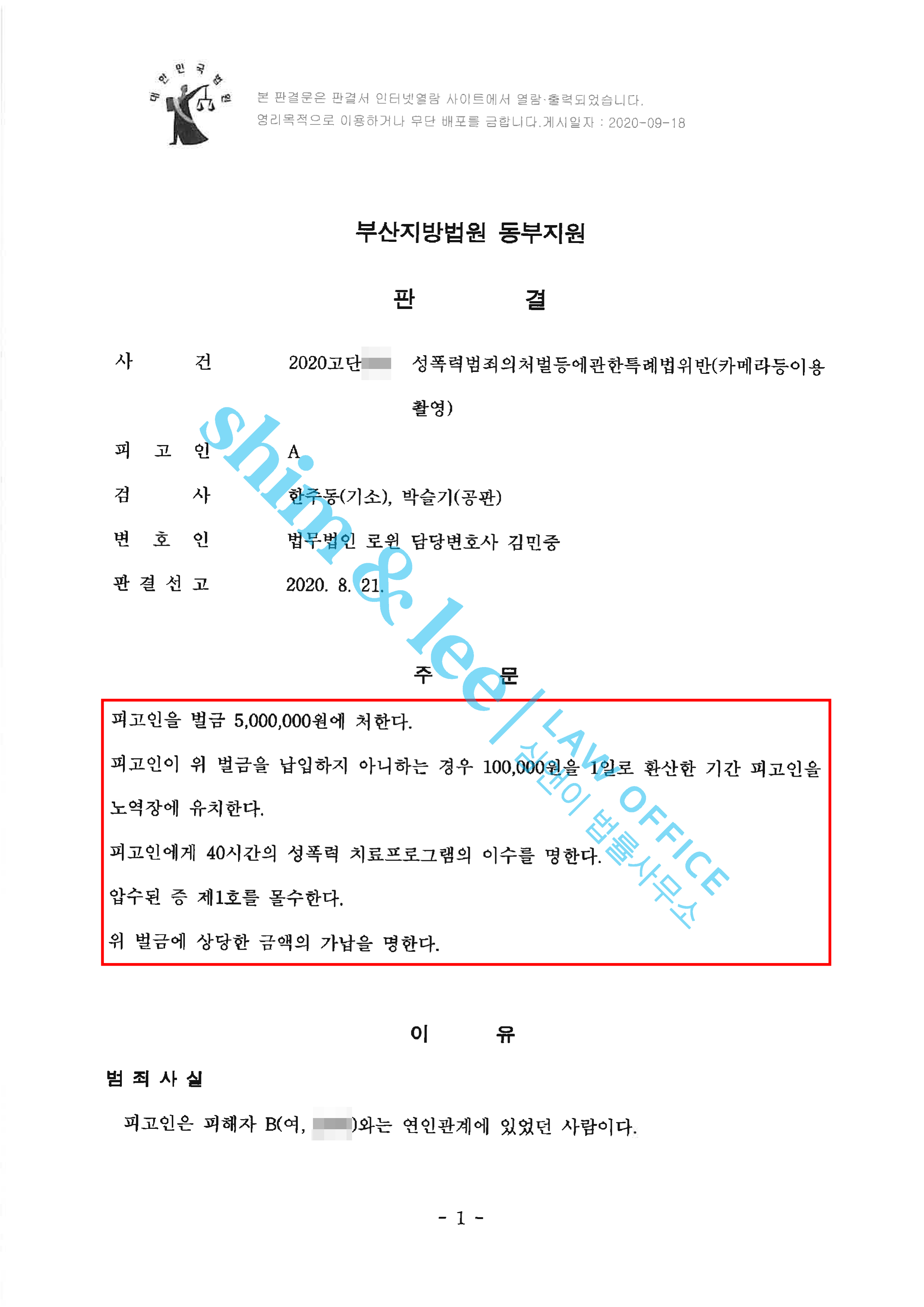 민사소송과거 연인이 몰래 성관계 동영상을 촬영하여 보관한 사례 2022.03.25합의금 3,000만 원 -