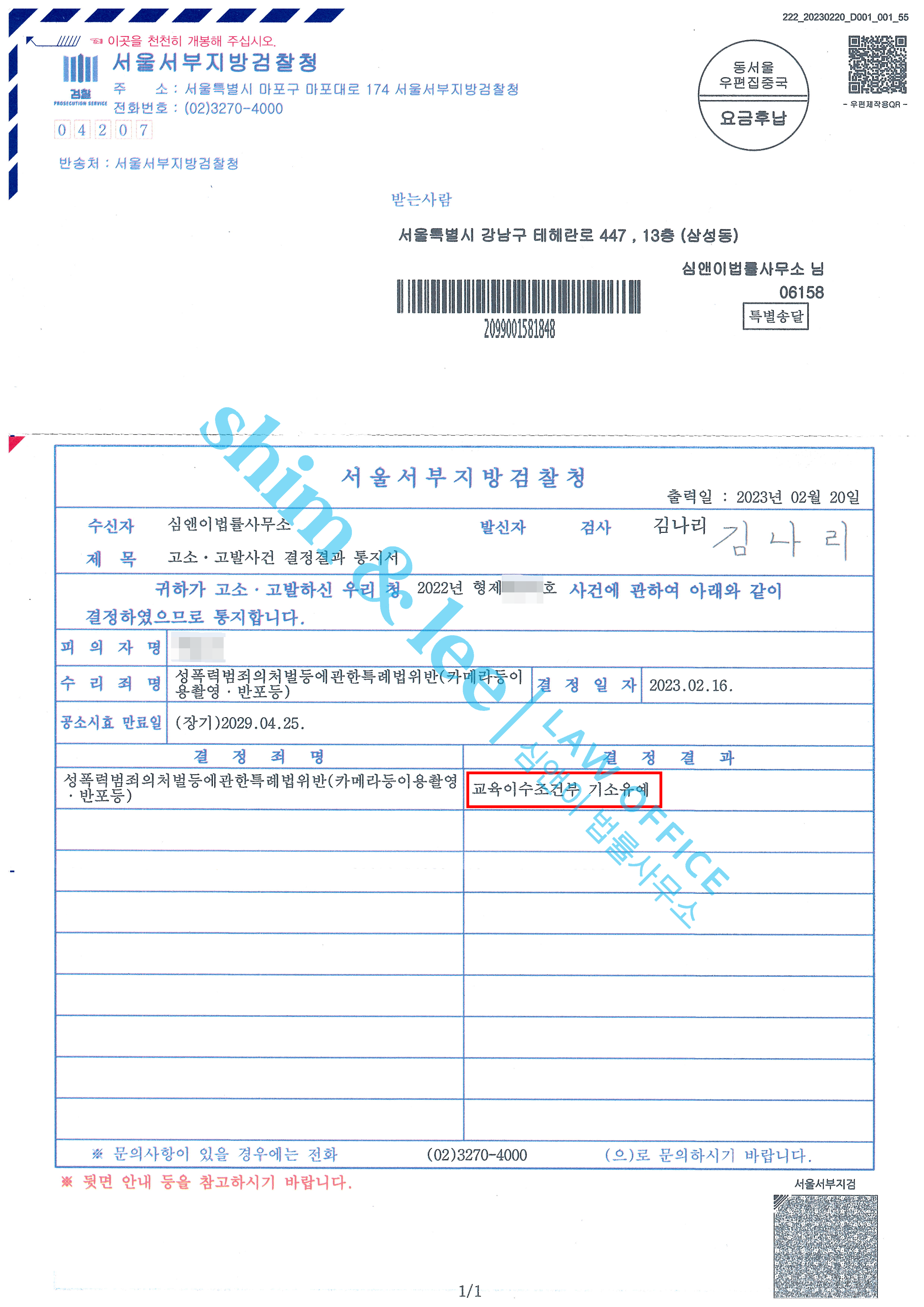 피해자는 심앤이를 통해 안전한 일상을 보장받고 피해에 대한 보상까지 받을 수 있었다며 깊은 감사를 표하셨습니다.