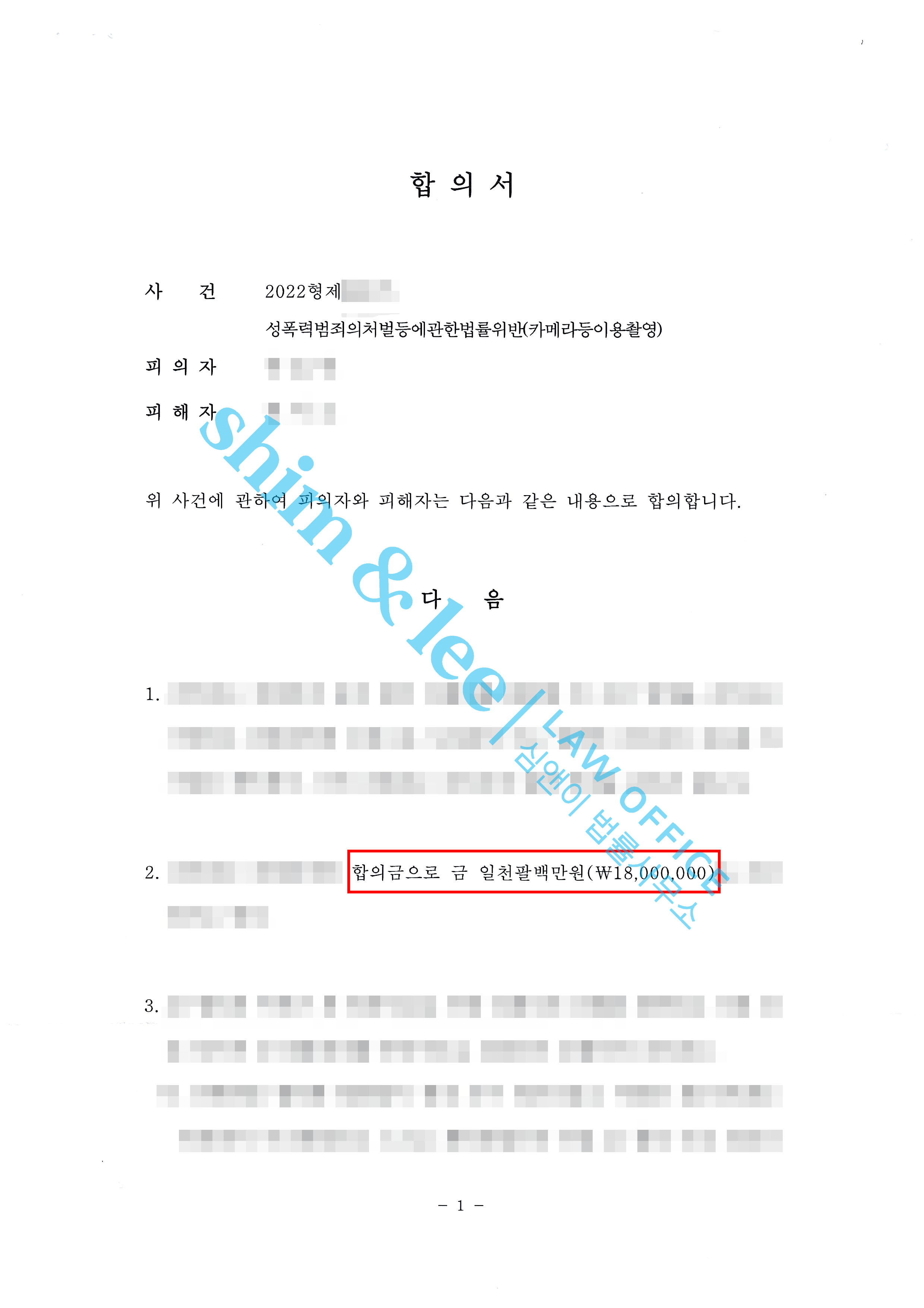 압박감을 느낀 가해자가 합의금 액수를 점점 늘려와 결과적으로 처음 제안액의 3배가 넘는 1,800만 원에 합의를 진행했습니다.