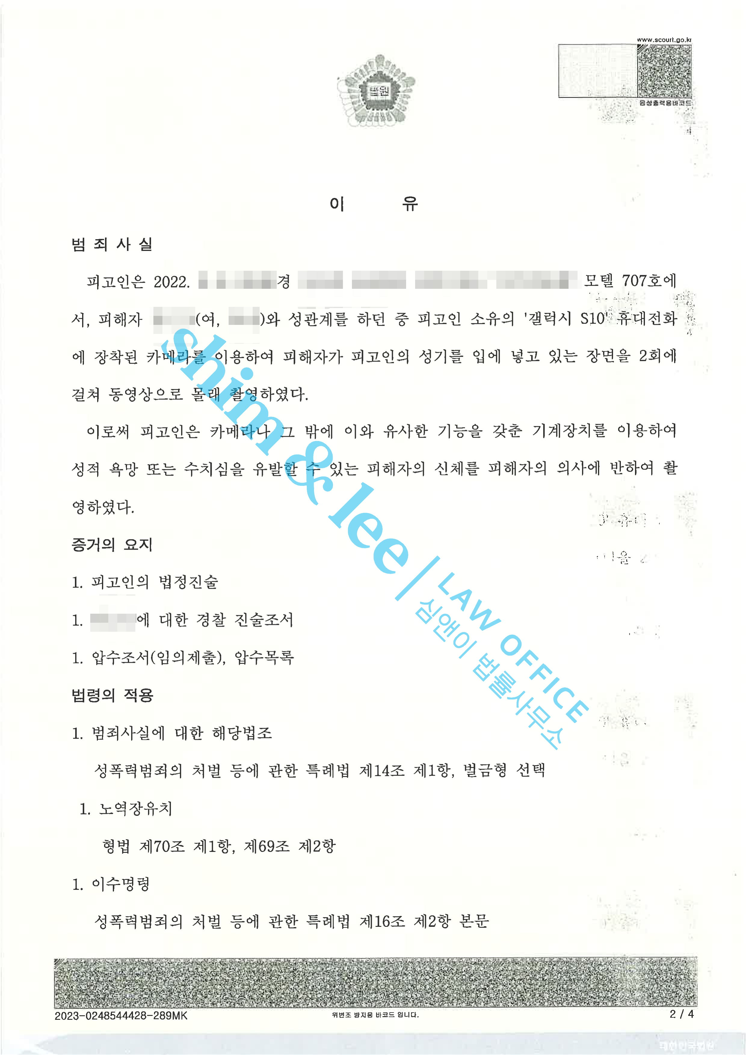 형사고소남자친구가 모텔에서 성관계 동영상 몰카, 2년 지나서 고소한 사건 2023.02.24징역 6월 / 집행유예 2년