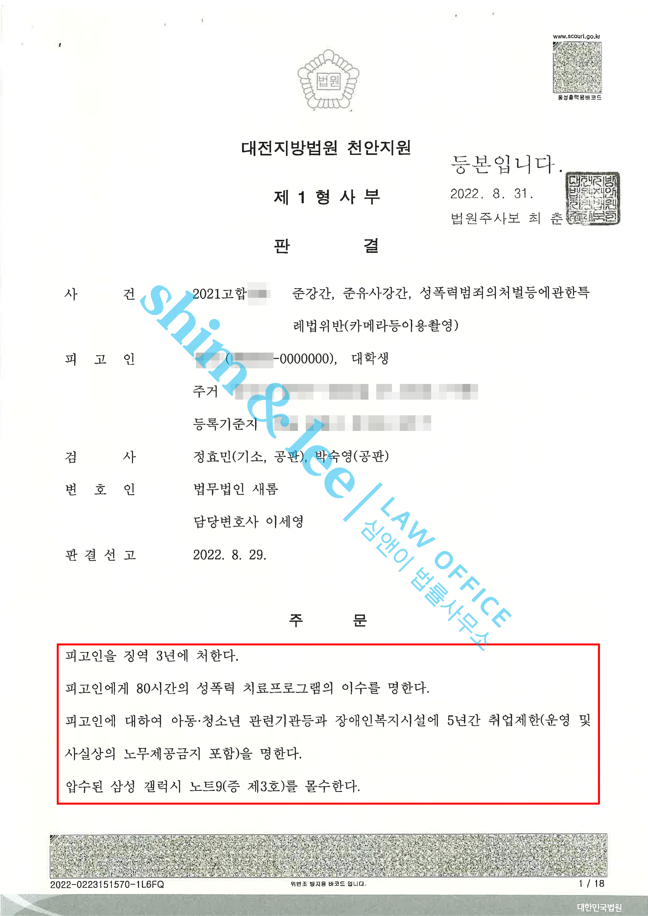 피해자는 소송이 진행되는 긴 시간을 견뎌내는 것이 쉽지는 않았지만 심앤이의 든든한 조력 덕분에 비로소 일상을 되찾을 수 있겠다며 기뻐하셨습니다.
