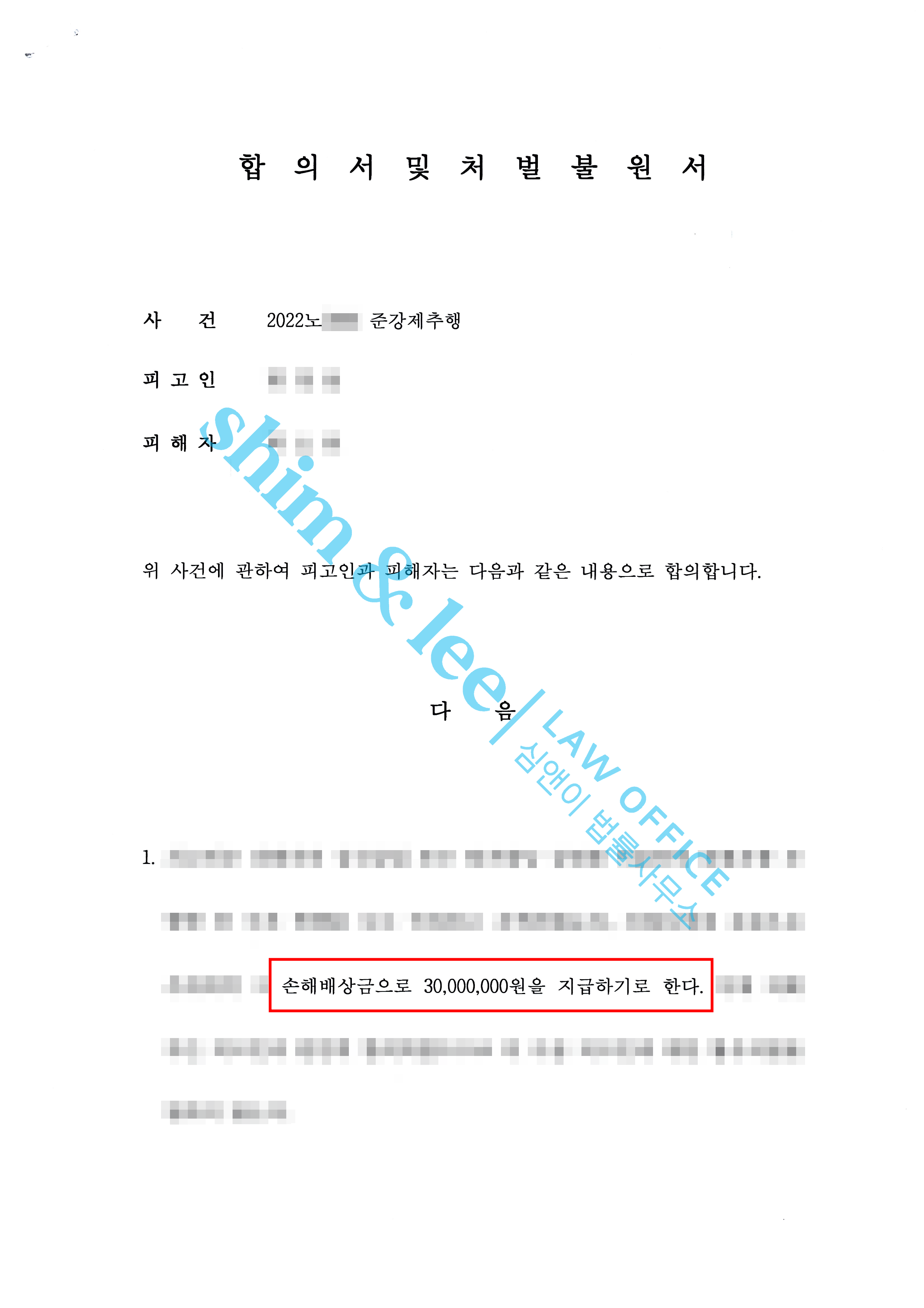 형사고소직장 상사가 산책 중 갑자기 성관계를 요구하며 강제로 추행한 사례 2022.01.03합의금 2,000만 원 / 기소유예 -