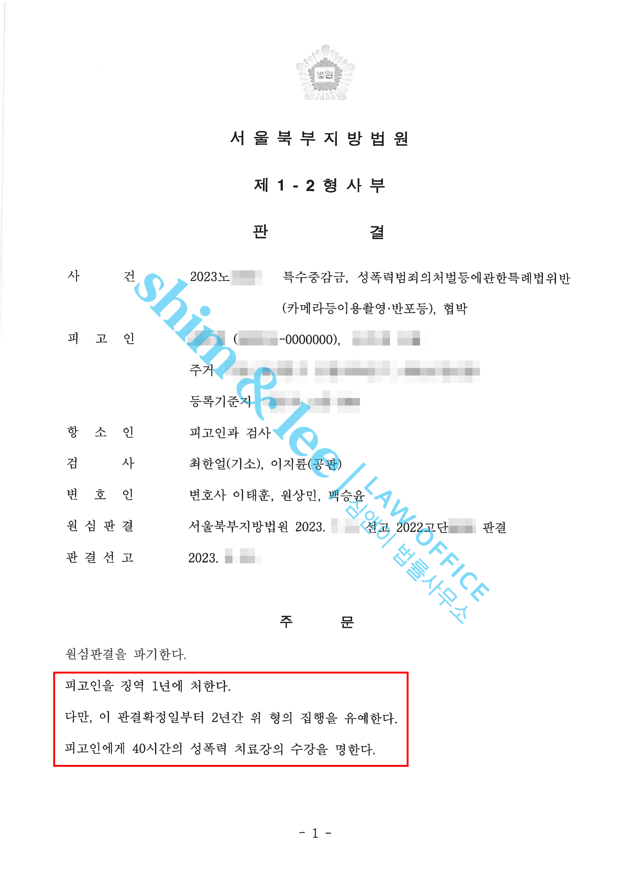 형사고소성관계 중 몰카 피해, 집행유예 3년 선고 받아낸 사건 2025.11.07징역 1년 / 집행유예 3년