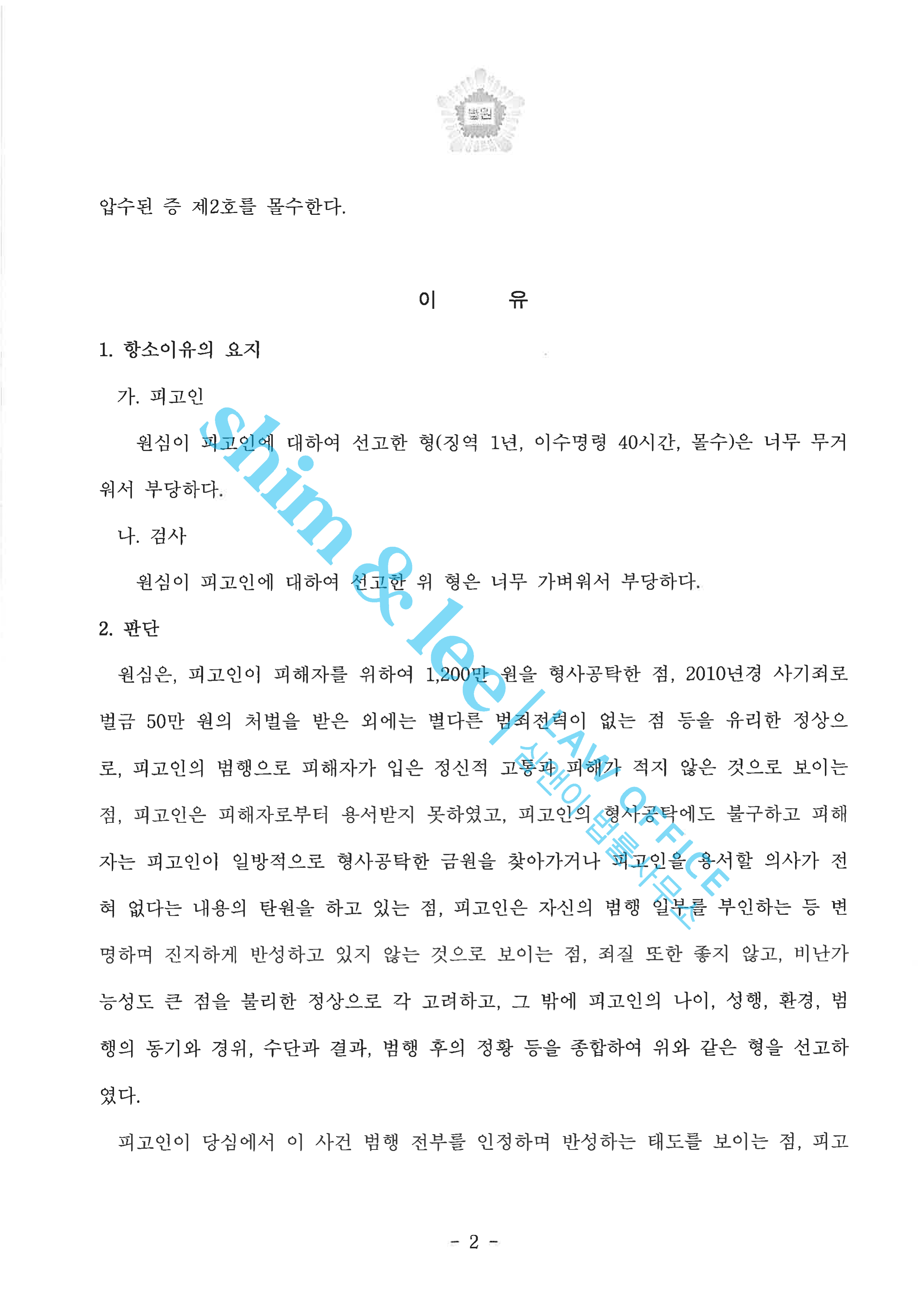 형사고소마사지샵에서 강제추행 당한 사건 2025.10.17항소 기각