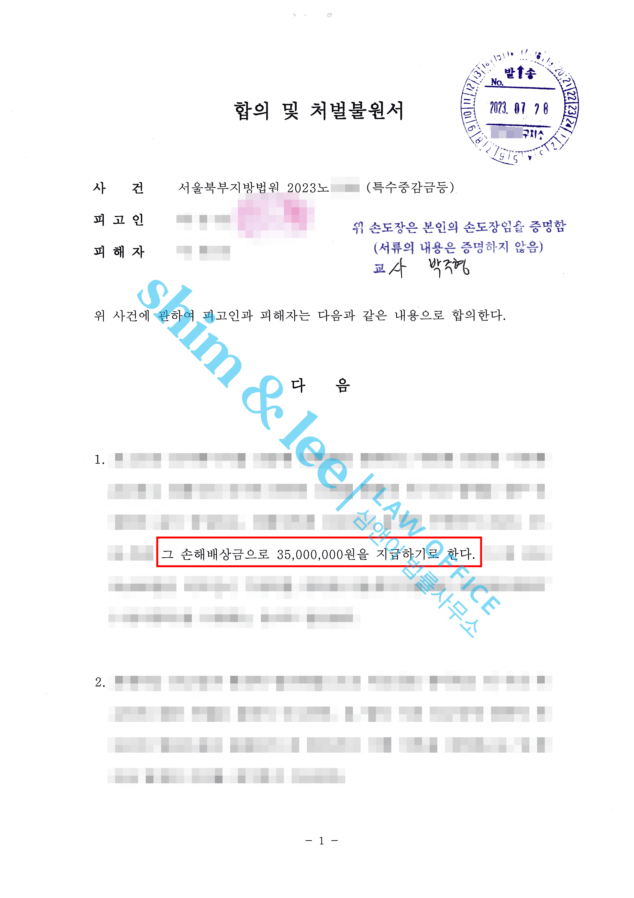 - 가해자 구속 상황 이용한 합의금 협상으로 가해자측 초기 제안액보다 약 2배 상향 -