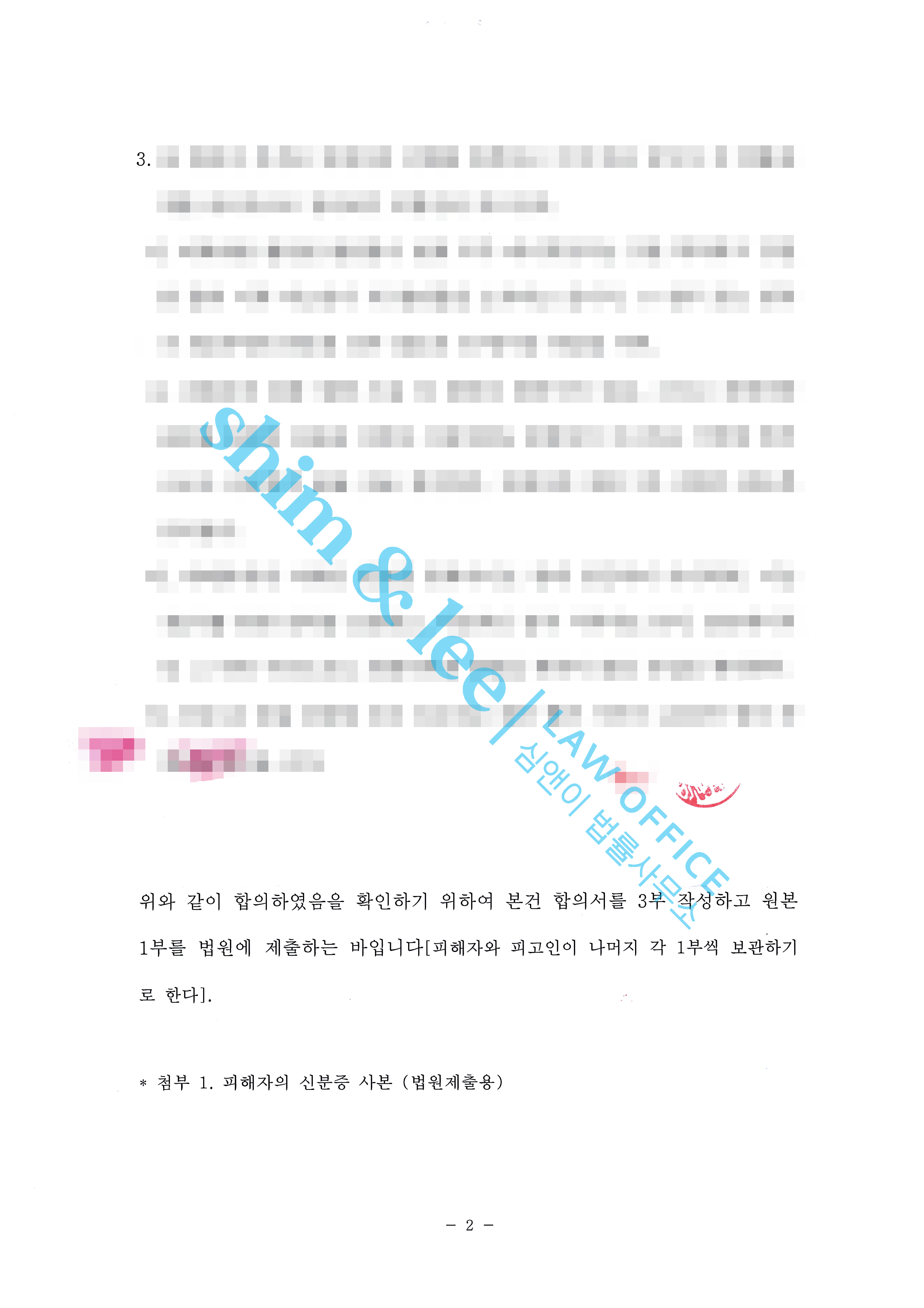 - 피해자는 최대한 많은 금액으로 합의 원함