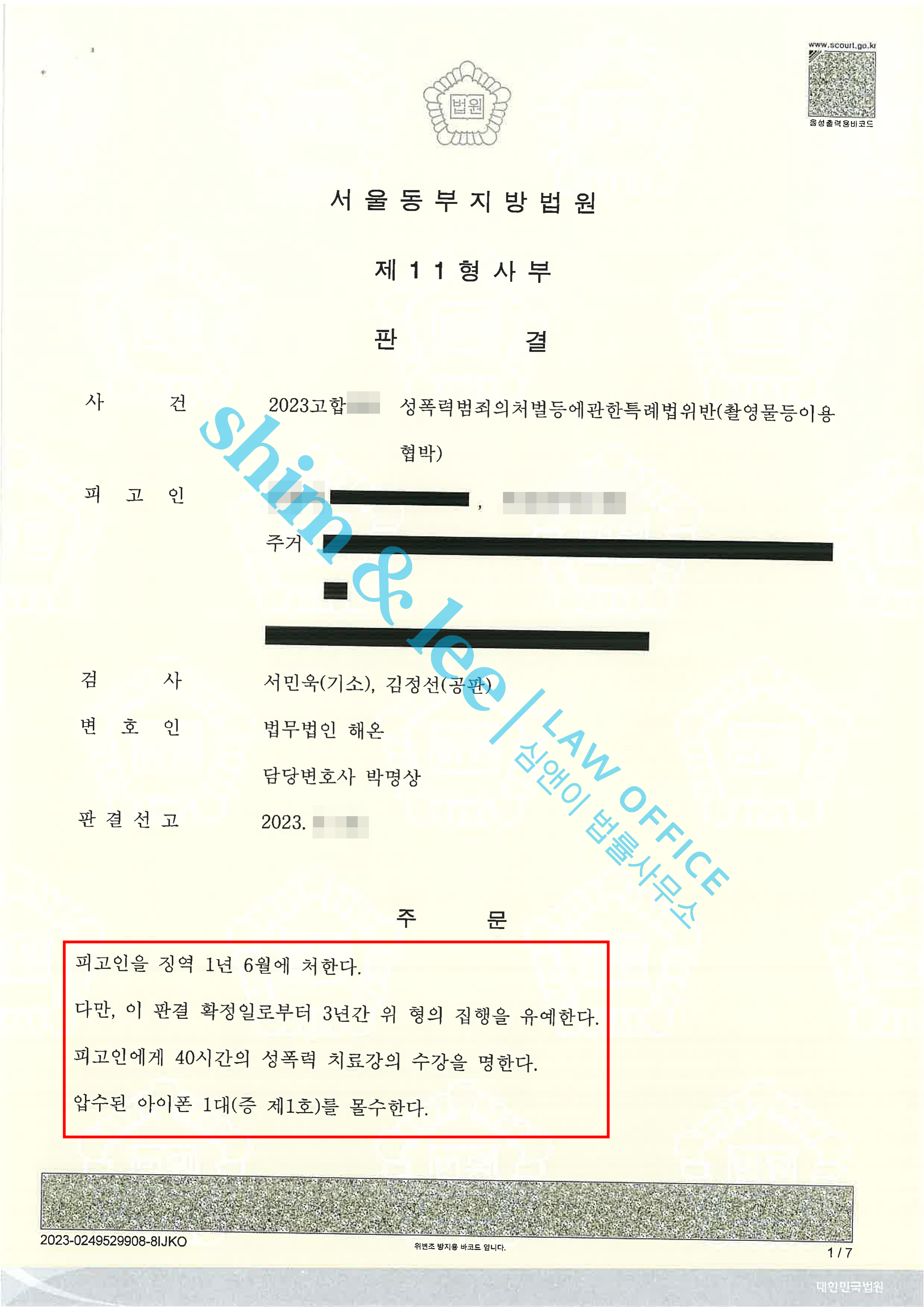 형사고소성관계 중 몰카 피해, 집행유예 3년 선고 받아낸 사건 2025.11.07징역 1년 / 집행유예 3년