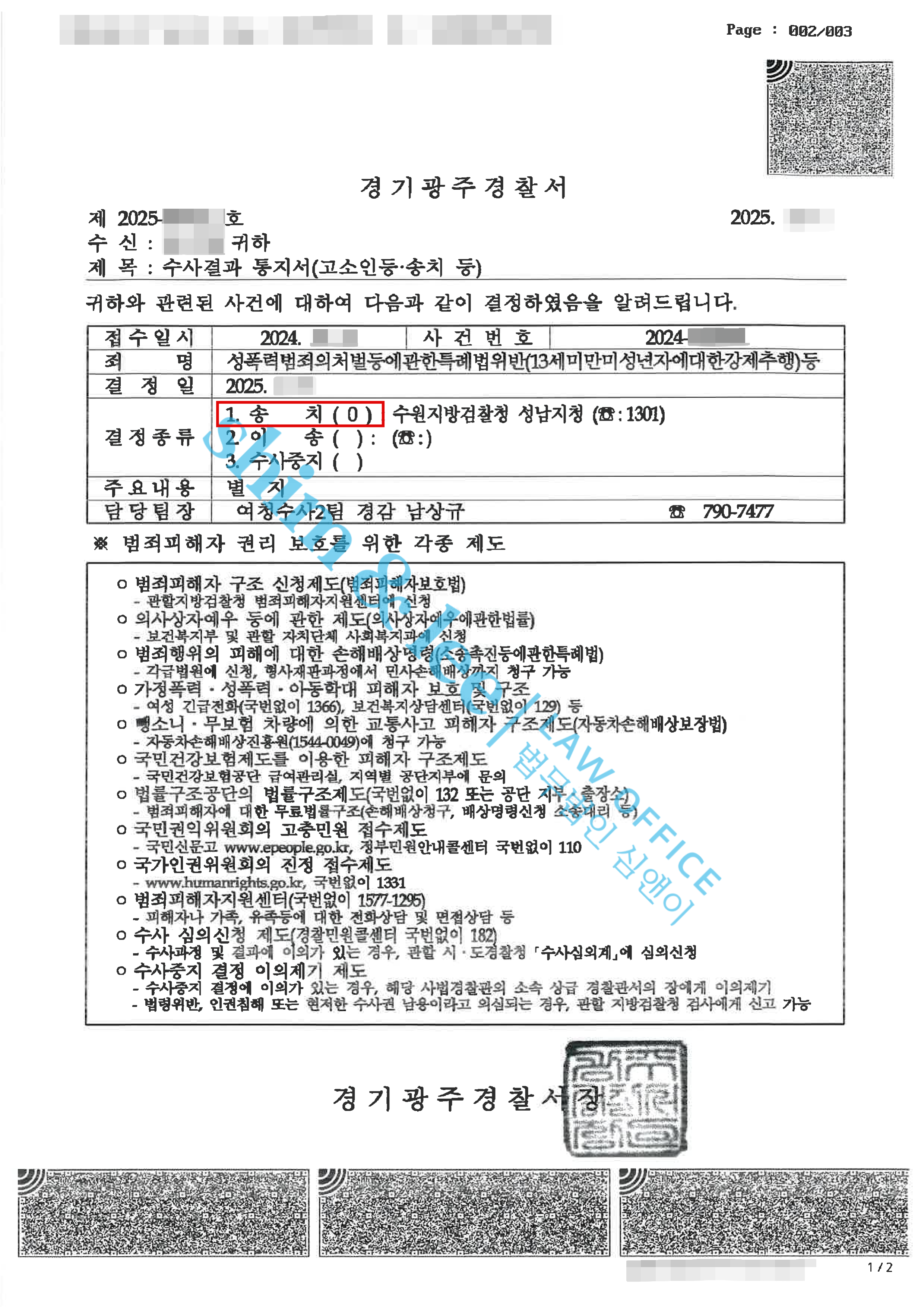 - 결국 가해자는 심앤이가 특정한 죄명 모두 인정되었고, 사건은 검찰청으로 송치되었습니다.