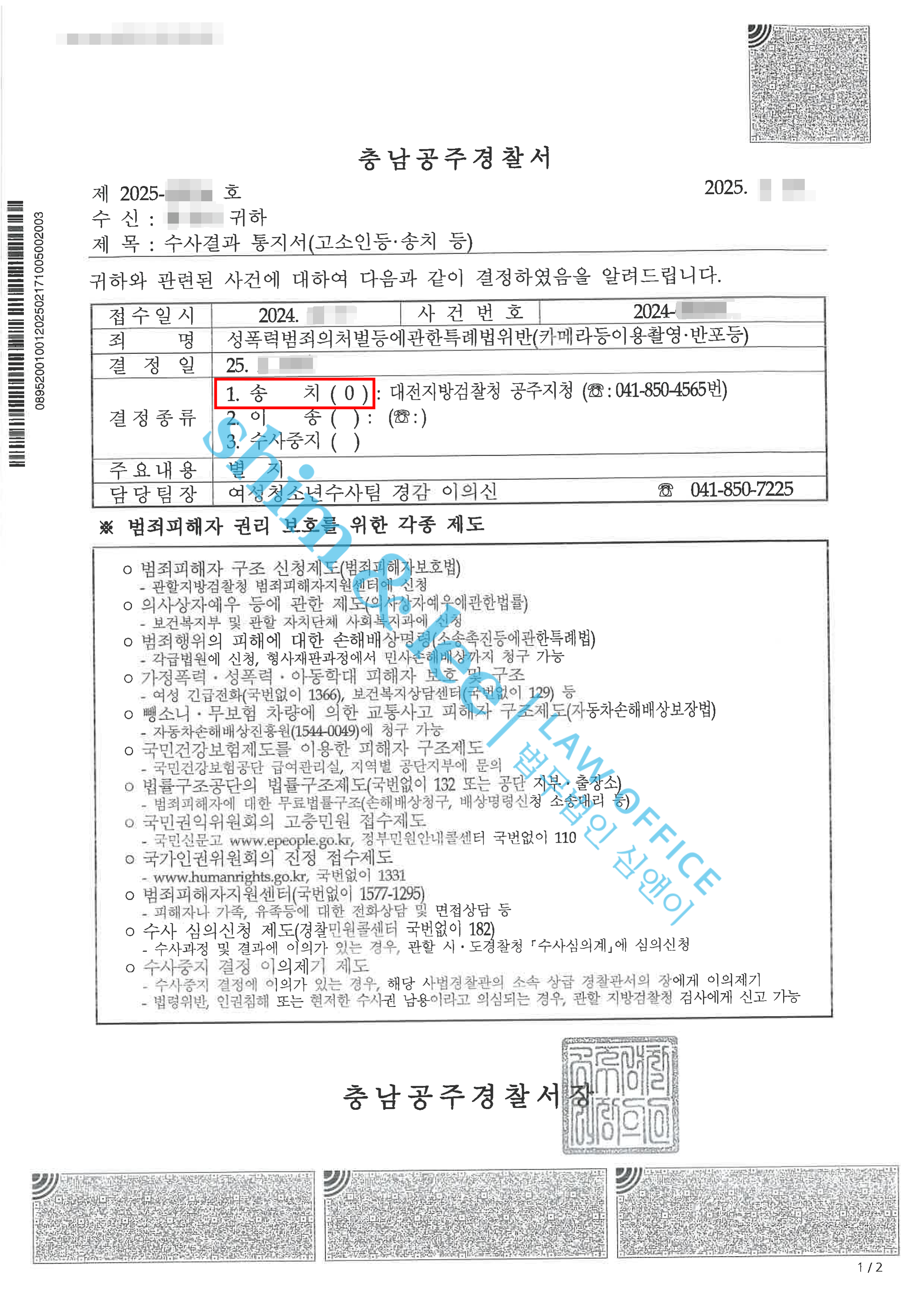 형사고소남자친구가 성관계 장면을 몰래 촬영한 사건 2025.09.12검찰 송치 -