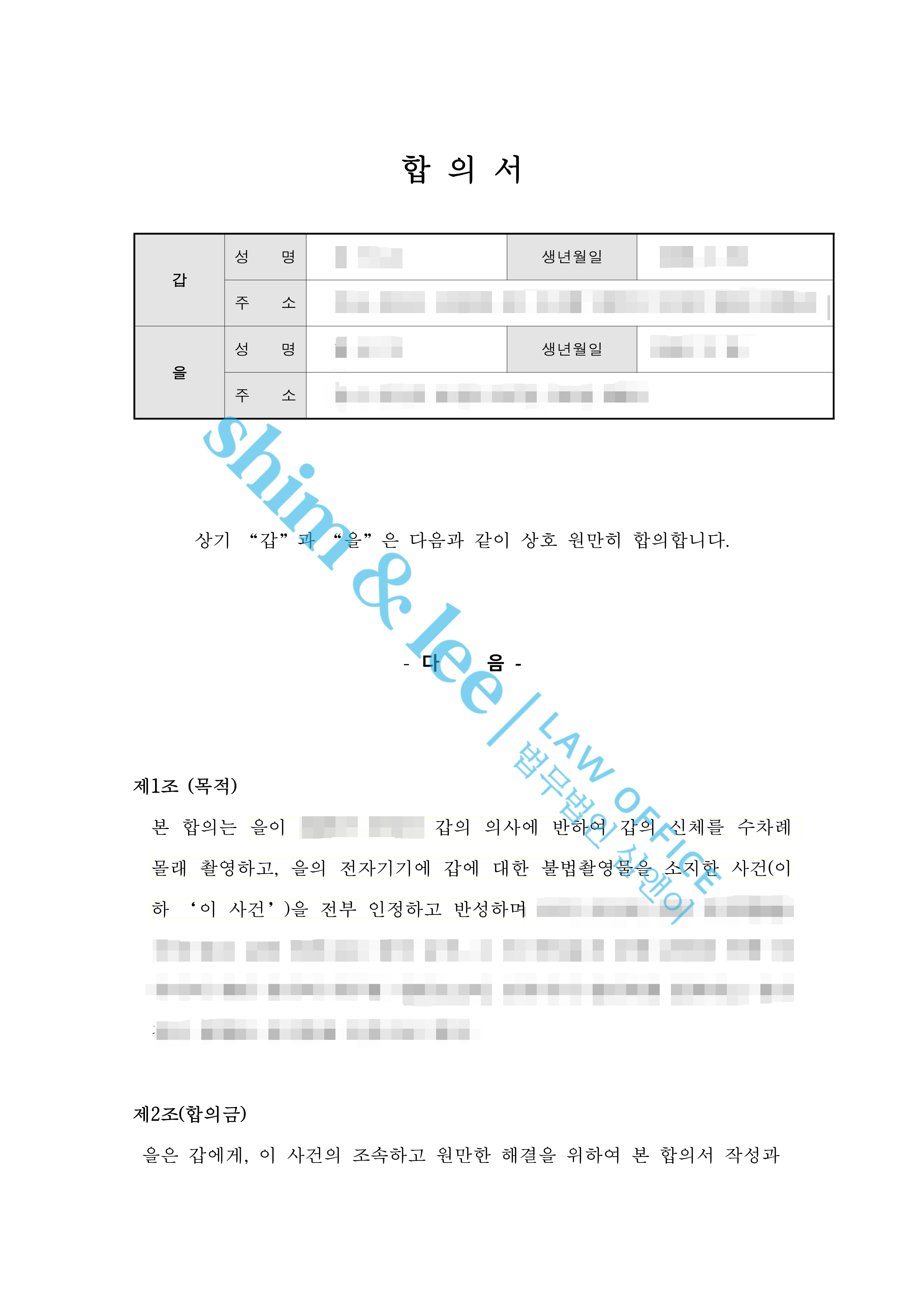 이밖에도 비밀유지, 접근금지, 통신제한 등 의뢰인에게 유리한 조항을 추가하여 합의를 진행하였습니다.