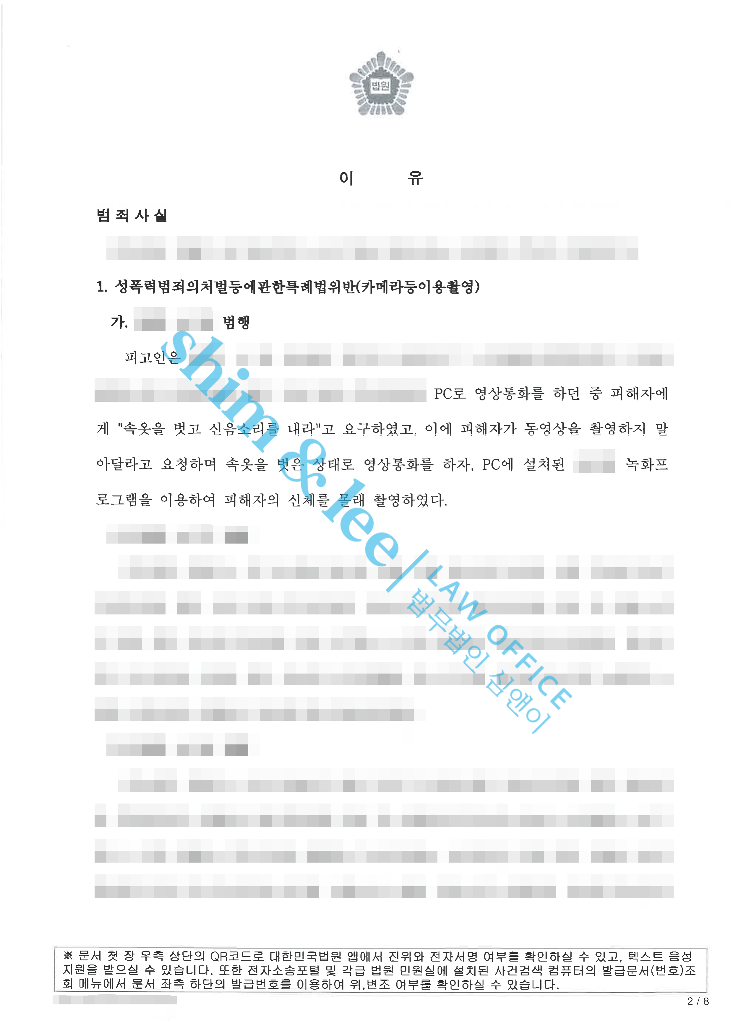- 특히, ①가해자는 신입 유튜버였던 피해자에게 의도적으로 접근해 영상통화를 유도한 뒤, 나체를 보여달라고 요구하고 몰래 녹화한 점에서 피해자의 취약한 상황을 악용한 계획적 범행으로 죄질이 매우 중하며 ②피해자 피해는 일파만파 커지고 있는데 불법 촬영물이 20개에 달하는 사이트로 퍼져 삭제만 최소 1년이 걸리고, 피해자 실명까지 기재하여 피해의 정도는 가히 산정할 수 없을 정도로 극심한 점을 주장하였습니다.