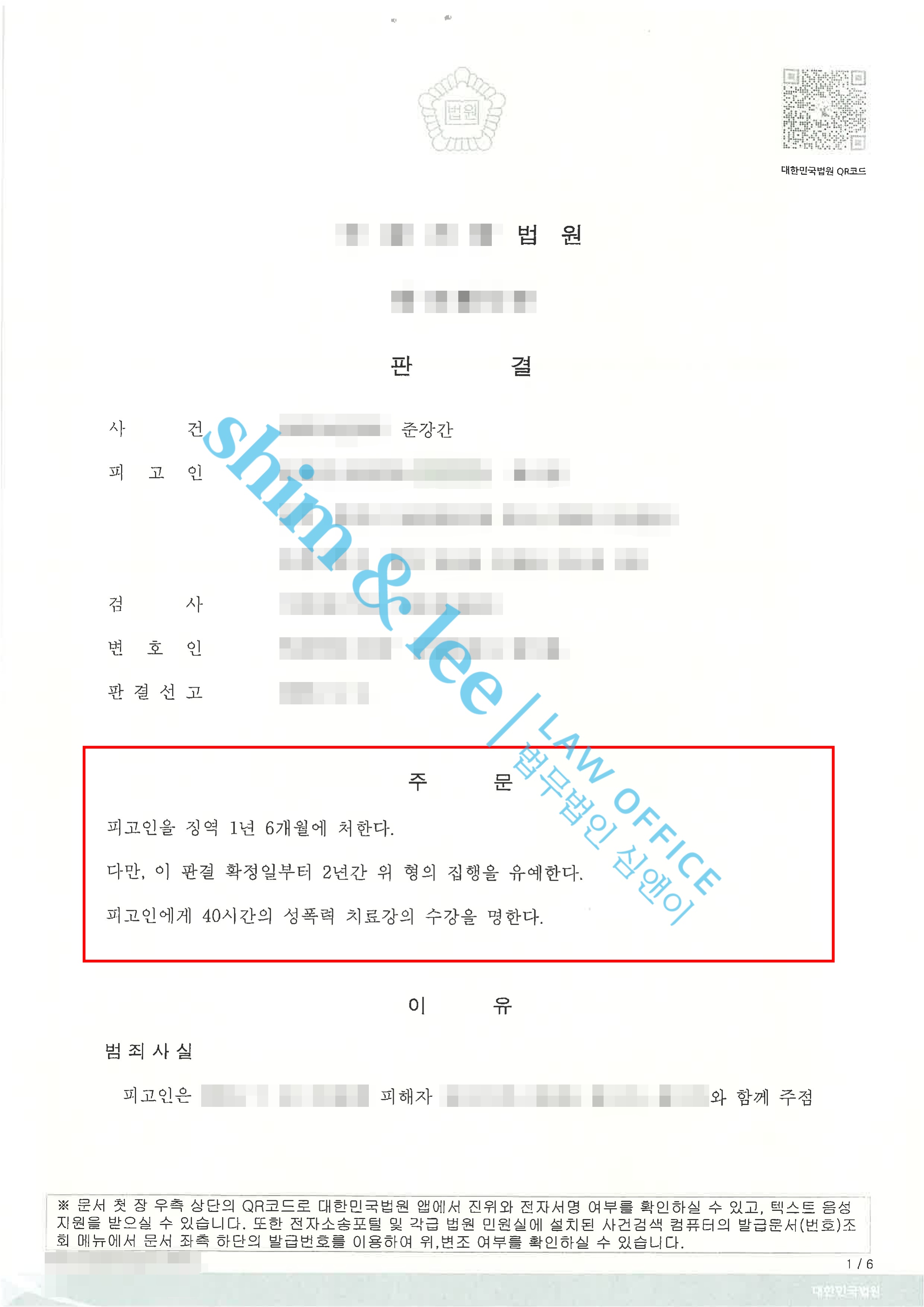 - 가해자는 최종적으로 징역 1년 6개월 집행유예 2년, 성폭력 치료 강의 40시간의 선고를 받았습니다.