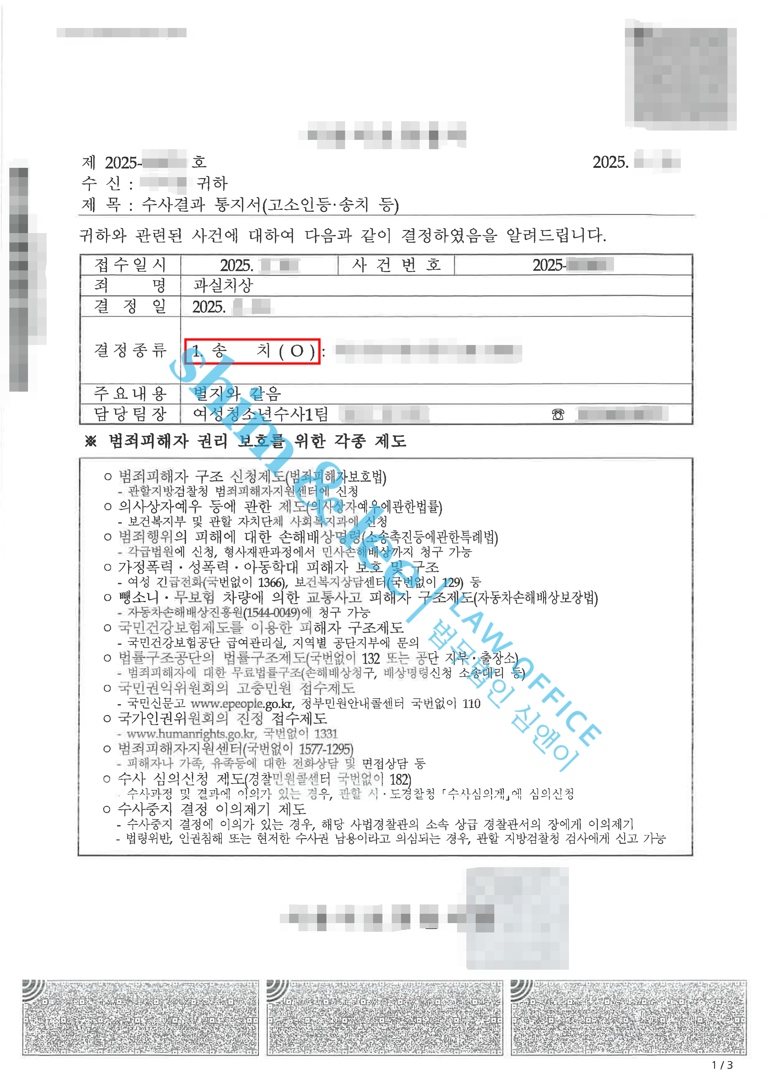 -심앤이의 주장이 모두 받아들여져, 결국 가해자는 과실치상죄 혐의로 송치되었습니다.