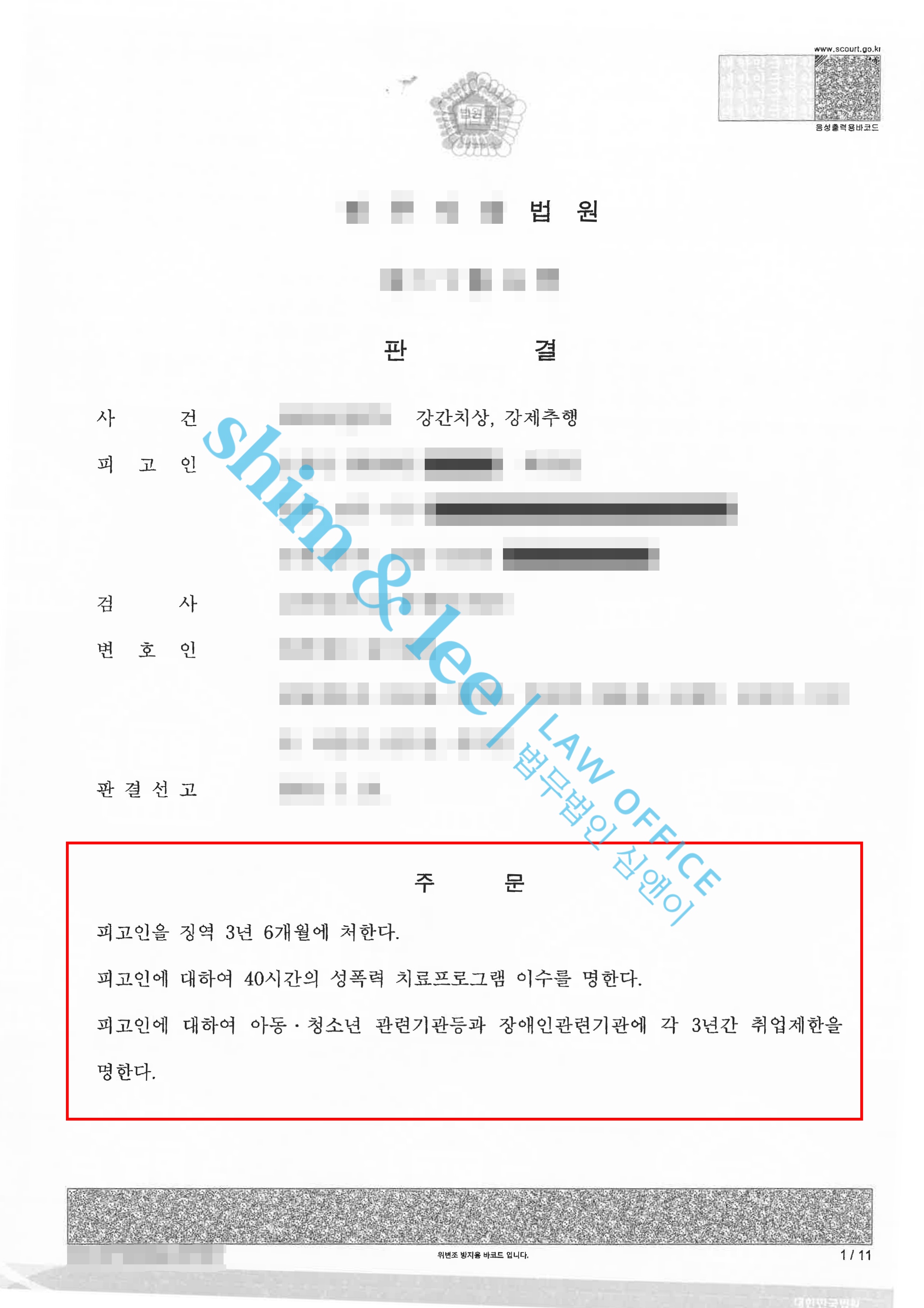 취업제한 3년 / 성폭력 치료강의 40시간 -