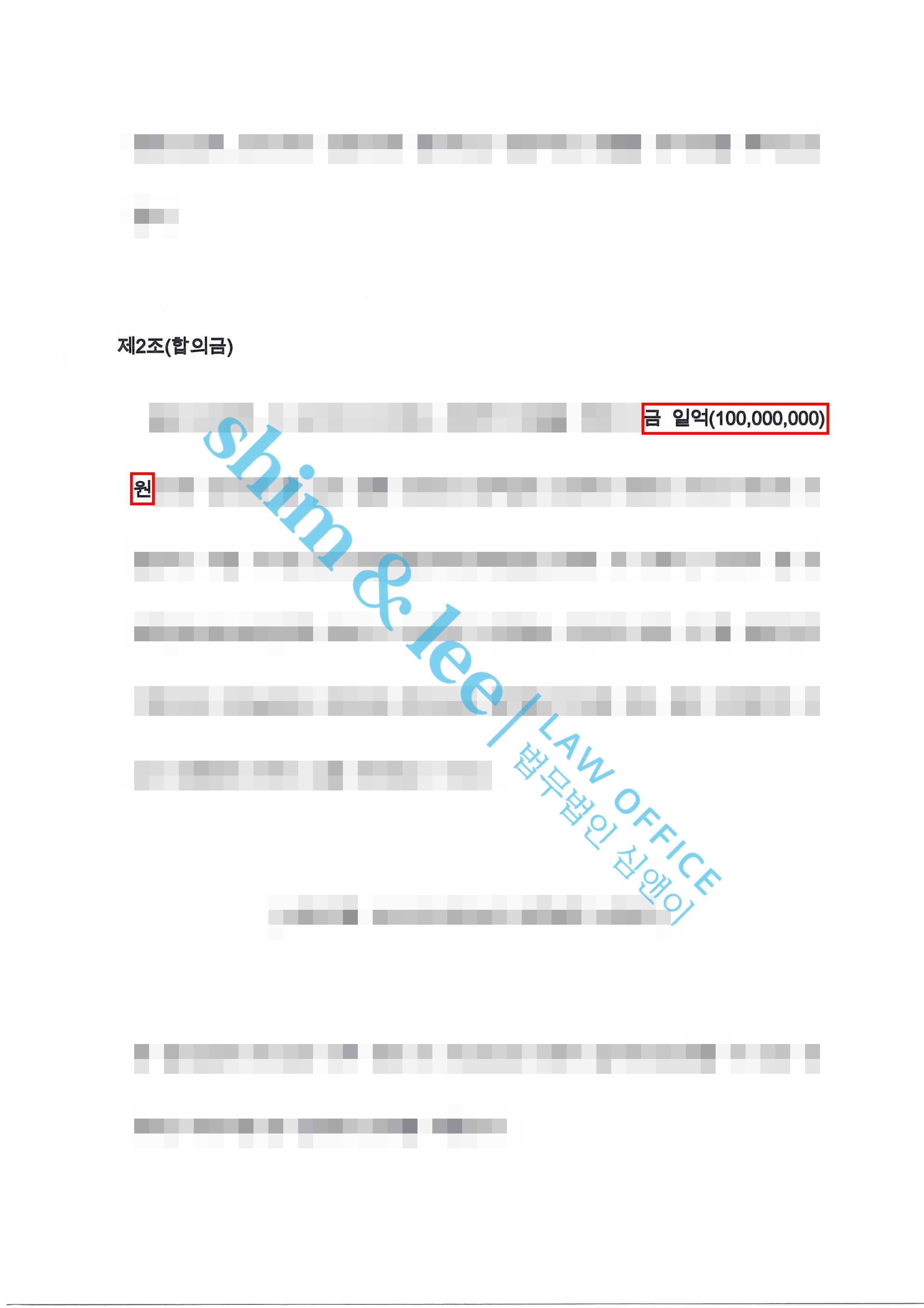- 대표 변호사님의 뛰어난 합의 진행 능력 덕분에 가해자는 모든 합의 조건을 수용하고, 최종적으로 합의금 1억 원을 마련하여 극적으로 합의가 이루어졌습니다. 이밖에도 비밀유지, 접근금지, 통신제한 등 의뢰인에게 유리한 조항을 추가하여 합의를 진행하였습니다.