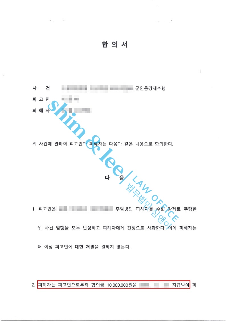 또한, 군형법 적용 가능성까지 고려할 때, 해당 금액으로는 절대 합의가 불가능하다는 점을 강조하며 피해자가 민사소송 진행을 결심한 상태임과 함께 곧 민사 소장을 접수할 예정임을 명확히 전달하였습니다. -