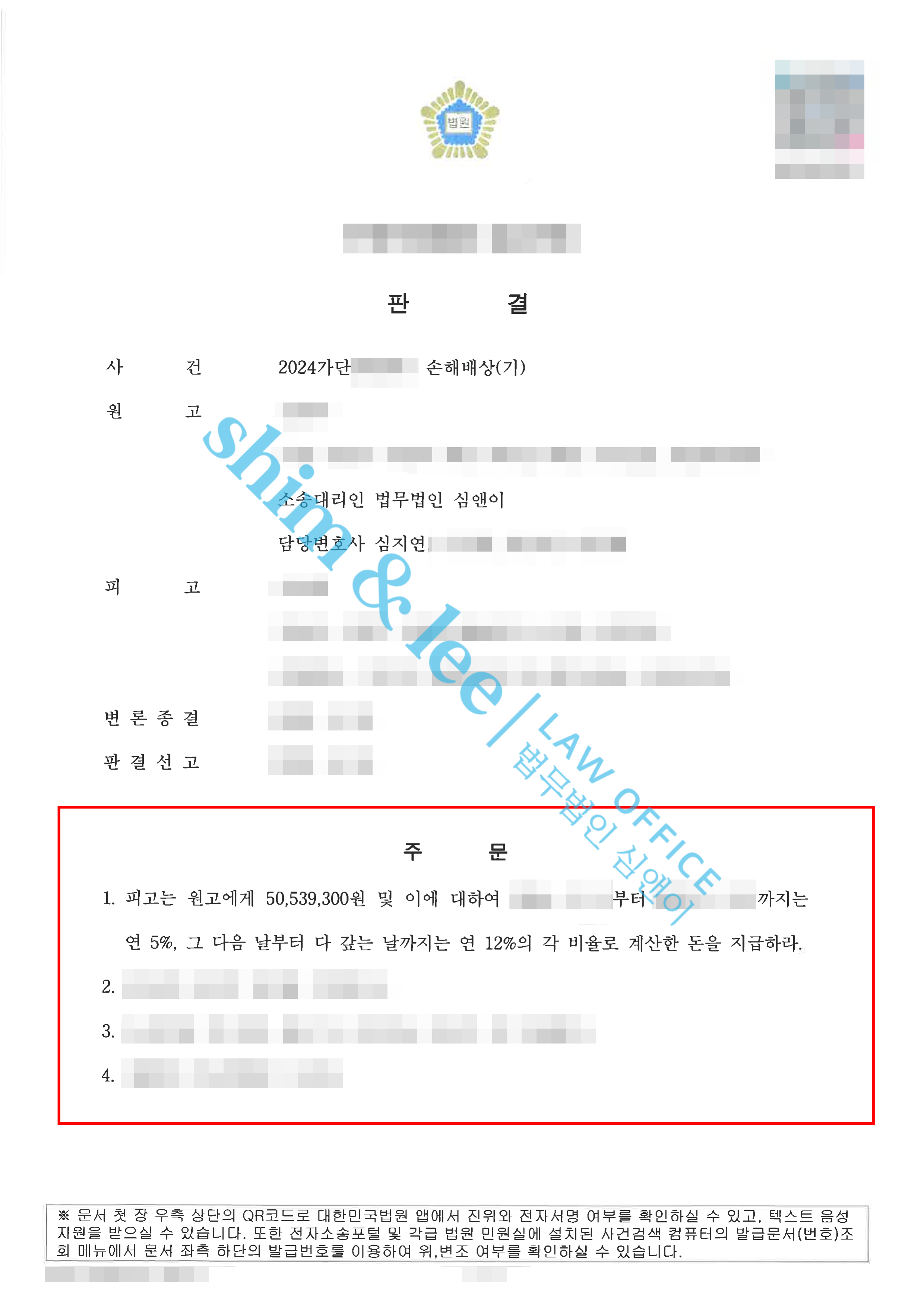 - 피고 측은 민사 변론기일에 출석하지 않으며 끝까지 무책임한 태도를 보였고, 1회 변론만에 변론이 종결되면서 즉시 판결 선고기일이 지정되었습니다. 최종적으로 민사 재판부는 피고의 손해배상 책임을 인정하고, 원고에게 5,053만 원을 지급하라는 판결을 선고하였습니다.