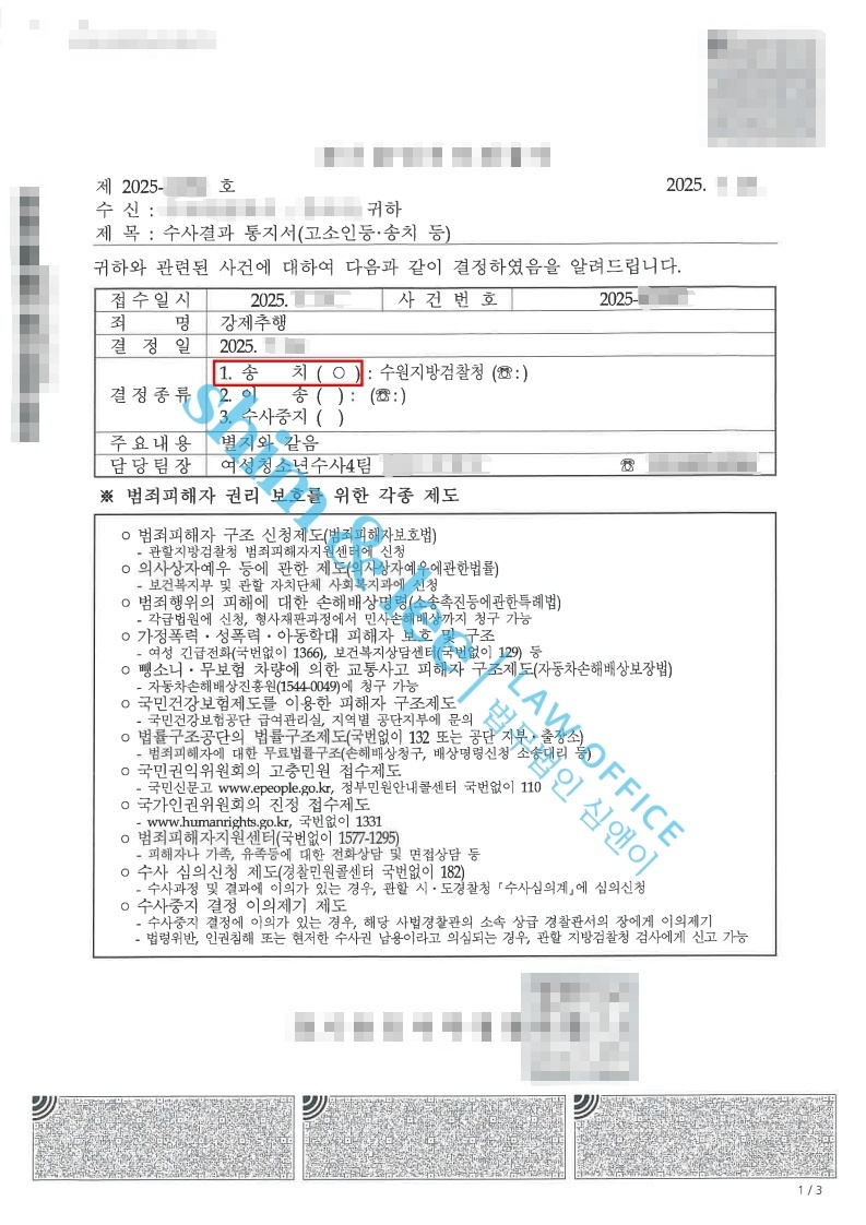 담당 변호사님은 이를 바탕으로 사건의 본질과 피해 사실이 잘 드러나도록 고소장을 신속히 작성해 제출했고, 담당 수사관이 사건의 핵심을 빠르게 파악하고 곧바로 수사에 착수할 수 있도록 조력하였습니다.