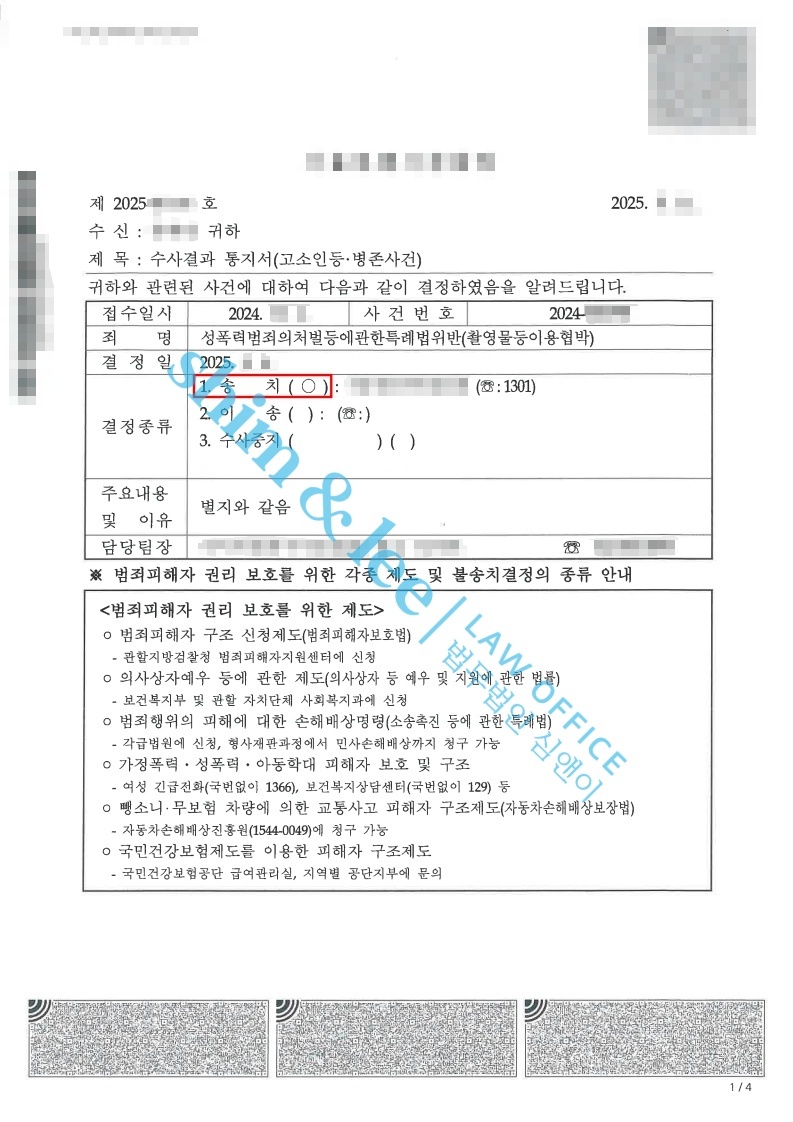 -심앤이의 주장대로 가해자는 촬영물을 이용한 협박죄 및 강요죄가 인정되어 송치되었습니다.