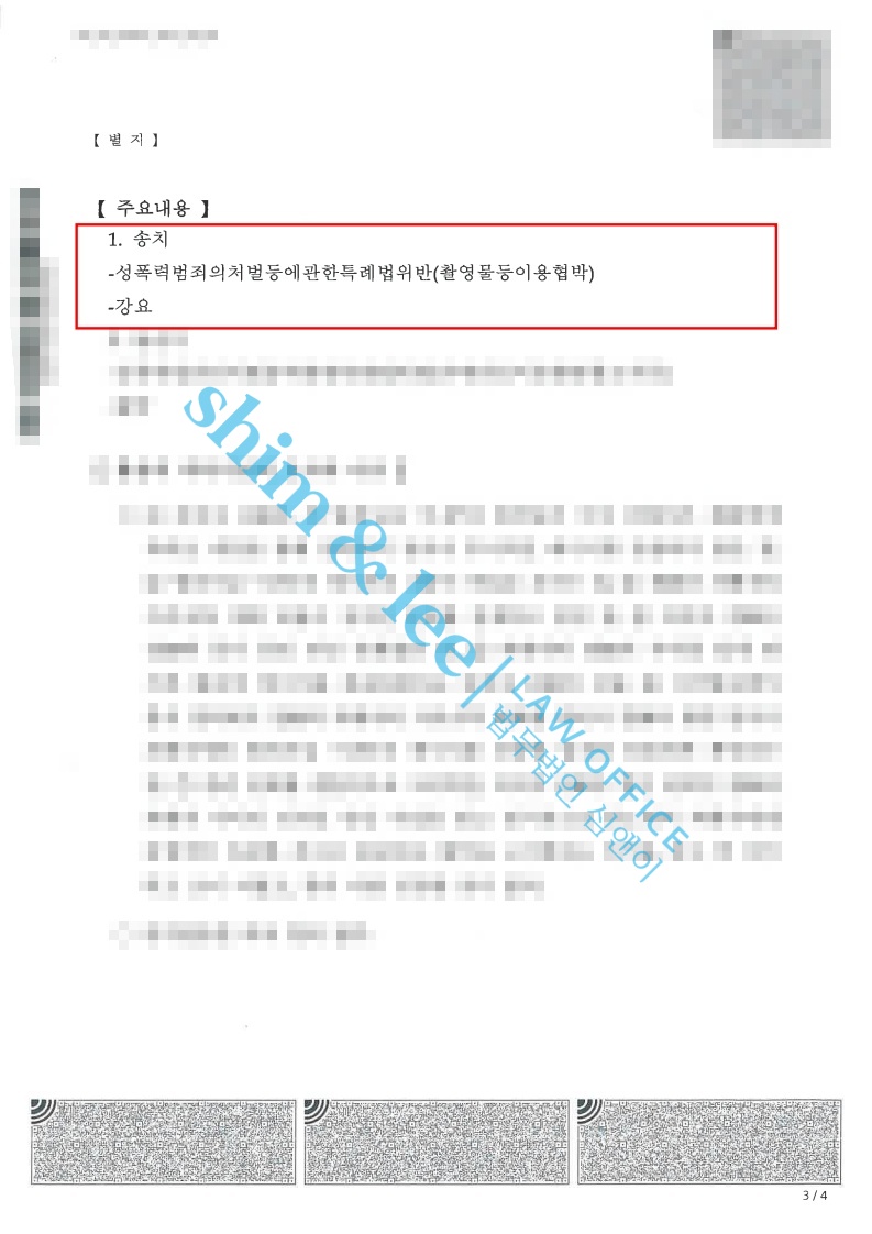 이에 변호사팀은 가해자가 촬영물을 빌미로 협박한 카카오톡 대화 내역은 모두 증거로 확보되어 있고, 이를 바탕으로 협박 및 강요의 행위는 이미 객관적으로 입증된 상황임을 의견서를 통해 강조했습니다.