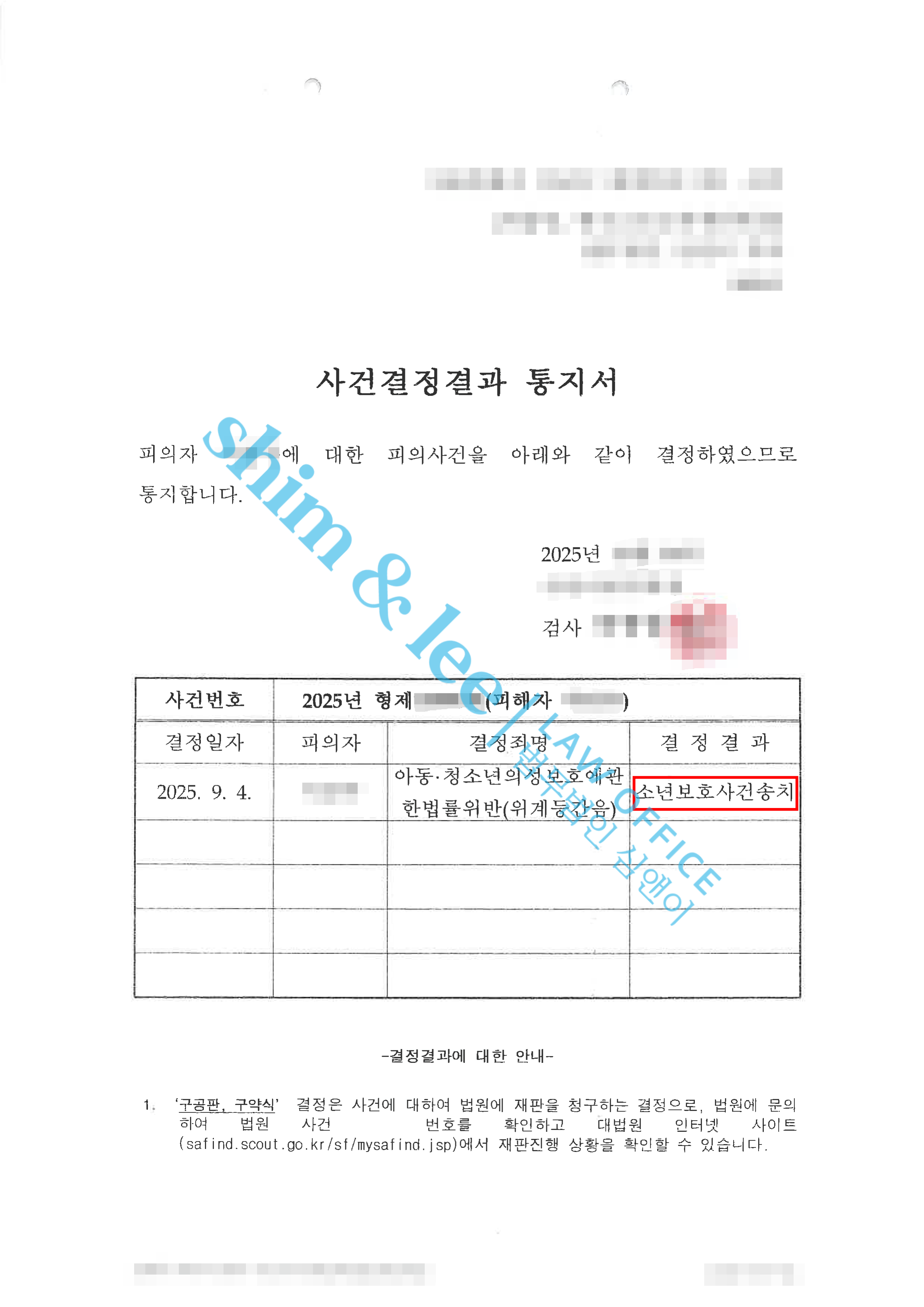 -소년보호사건은 가해자가 미성년자인 경우, 재범 방지와 교화를 위한 보호처분을 받도록 하는 제도입니다. 심앤이는 향후 진행될 가정법원 심리 과정에서 피해 사실과 가해자의 죄질을 다시 한 번 강조하여, 보다 엄중한 보호처분이 이루어질 수 있도록 조력할 예정입니다.