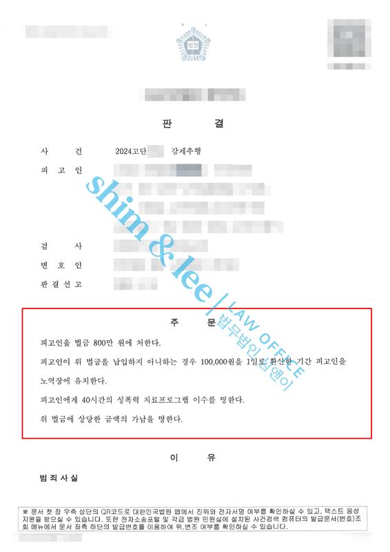 성폭력 치료강의 40시간 / 합의금 2,000만 원 -