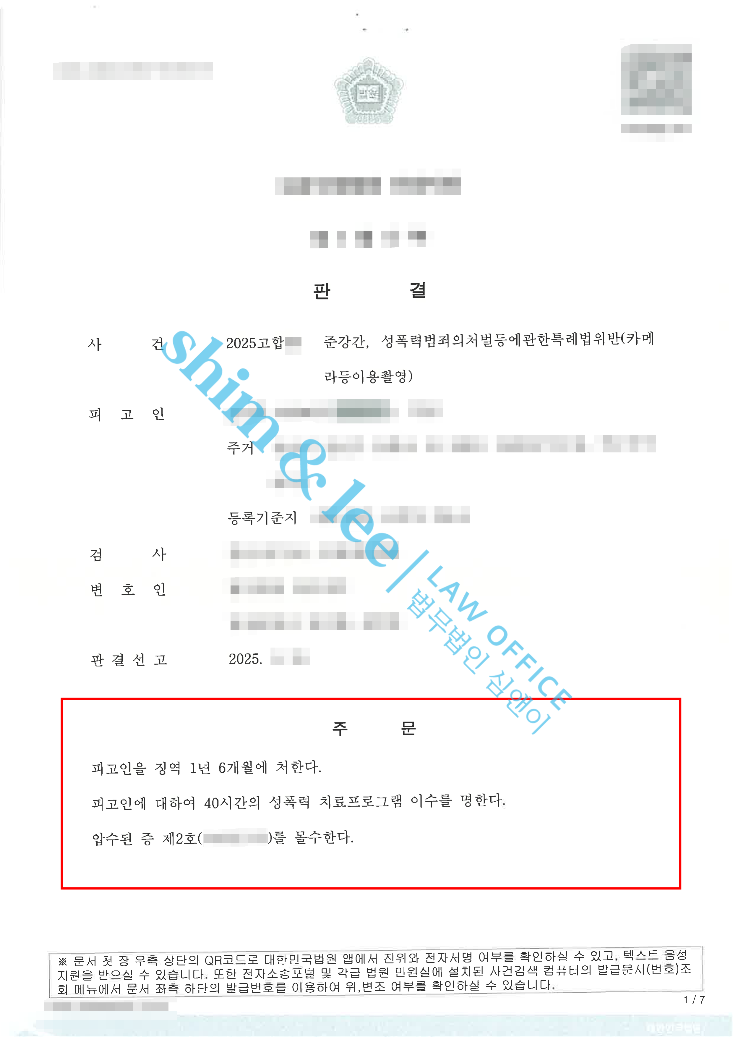 형사고소성관계 중 몰카 피해, 집행유예 3년 선고 받아낸 사건 2025.11.07징역 1년 / 집행유예 3년