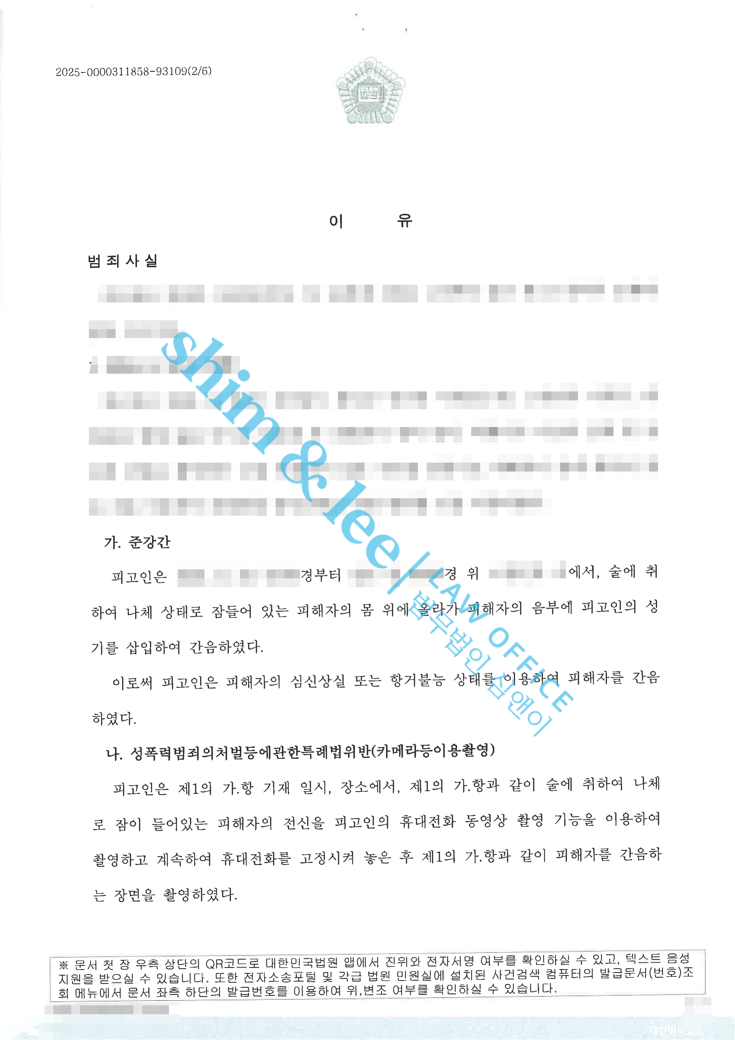 형사고소술에 취해 잠든 사이 직장 동료에게 유사강간 피해 당한 사건 2025.10.17불구속 구공판 -